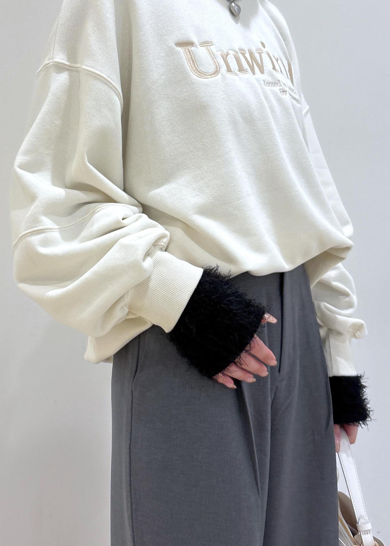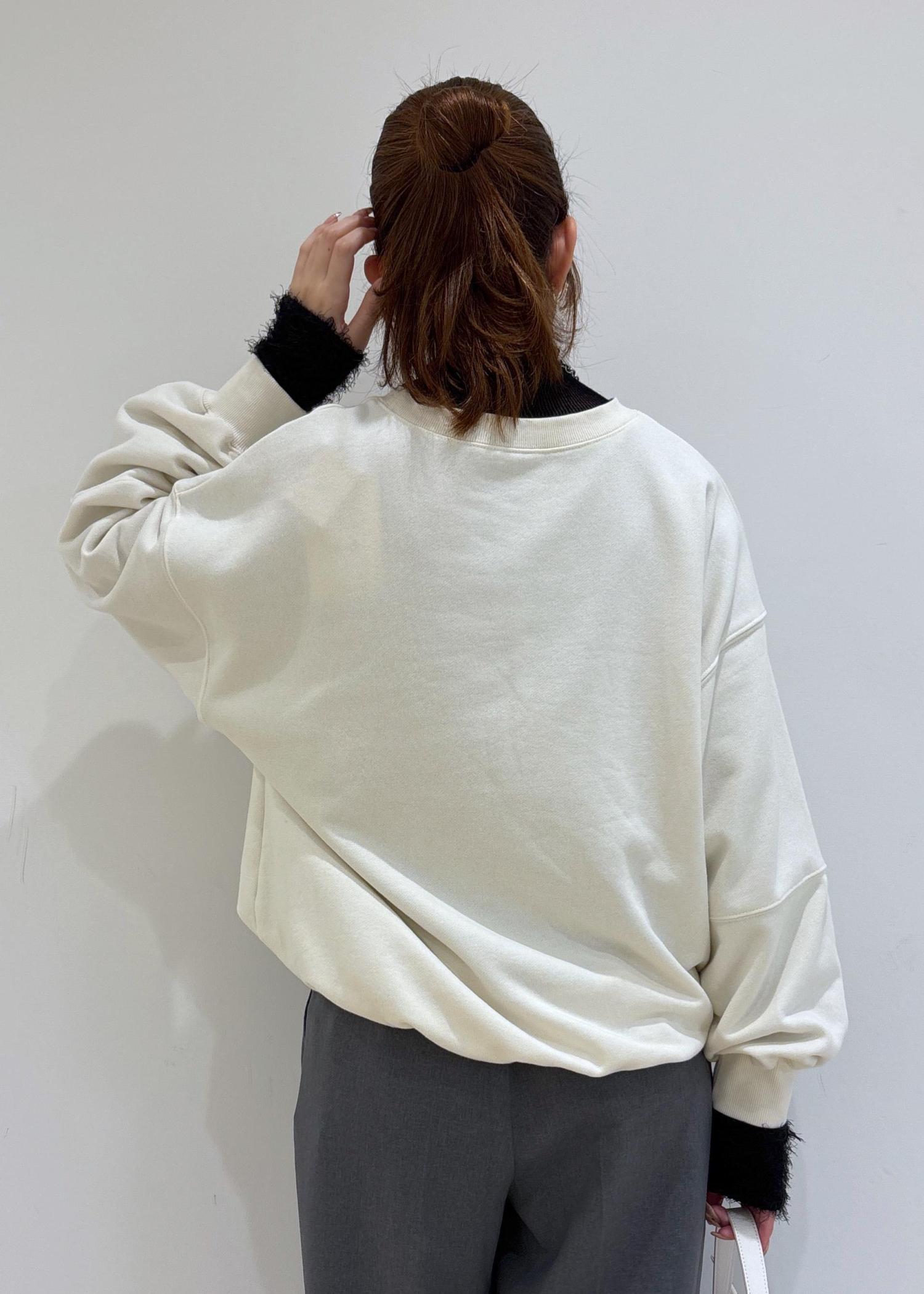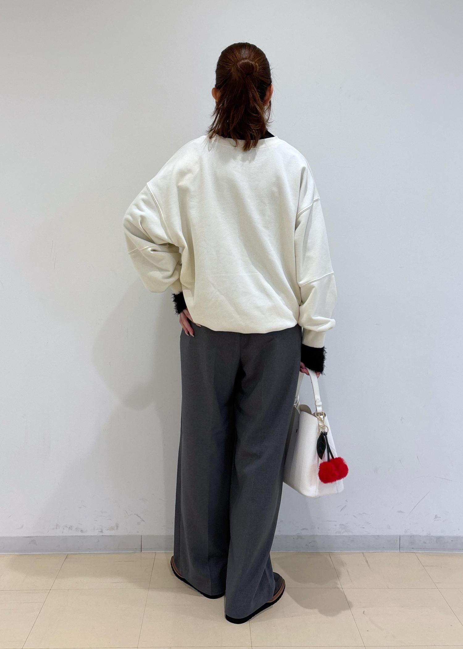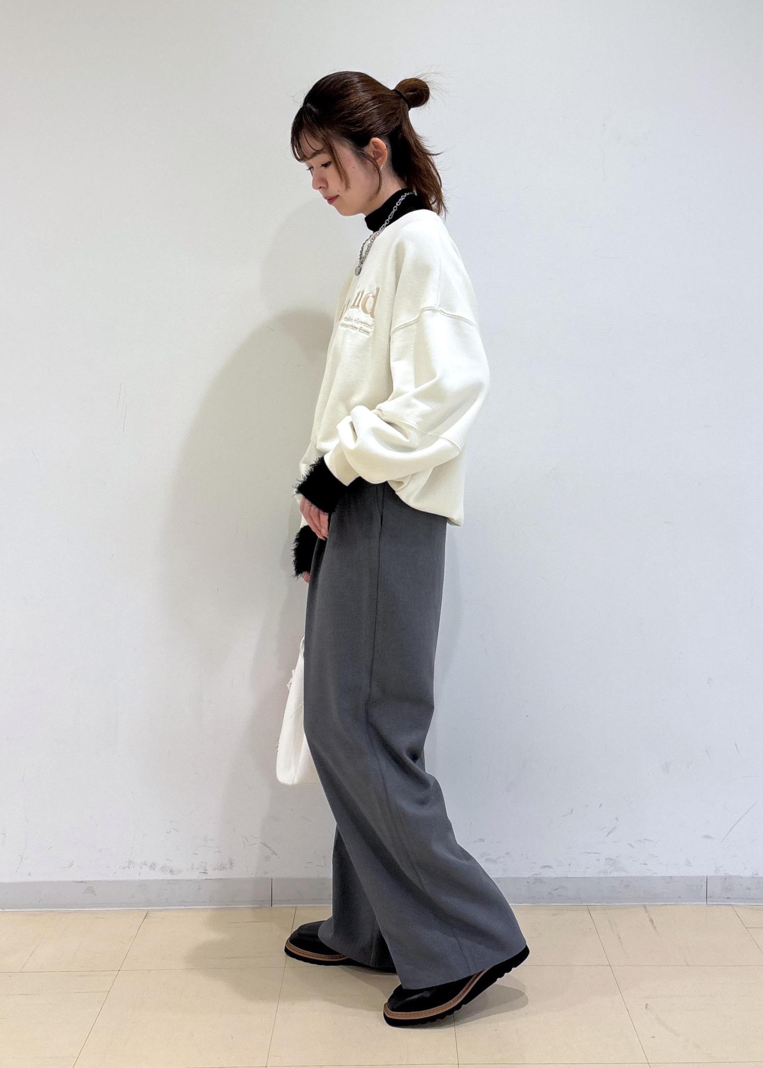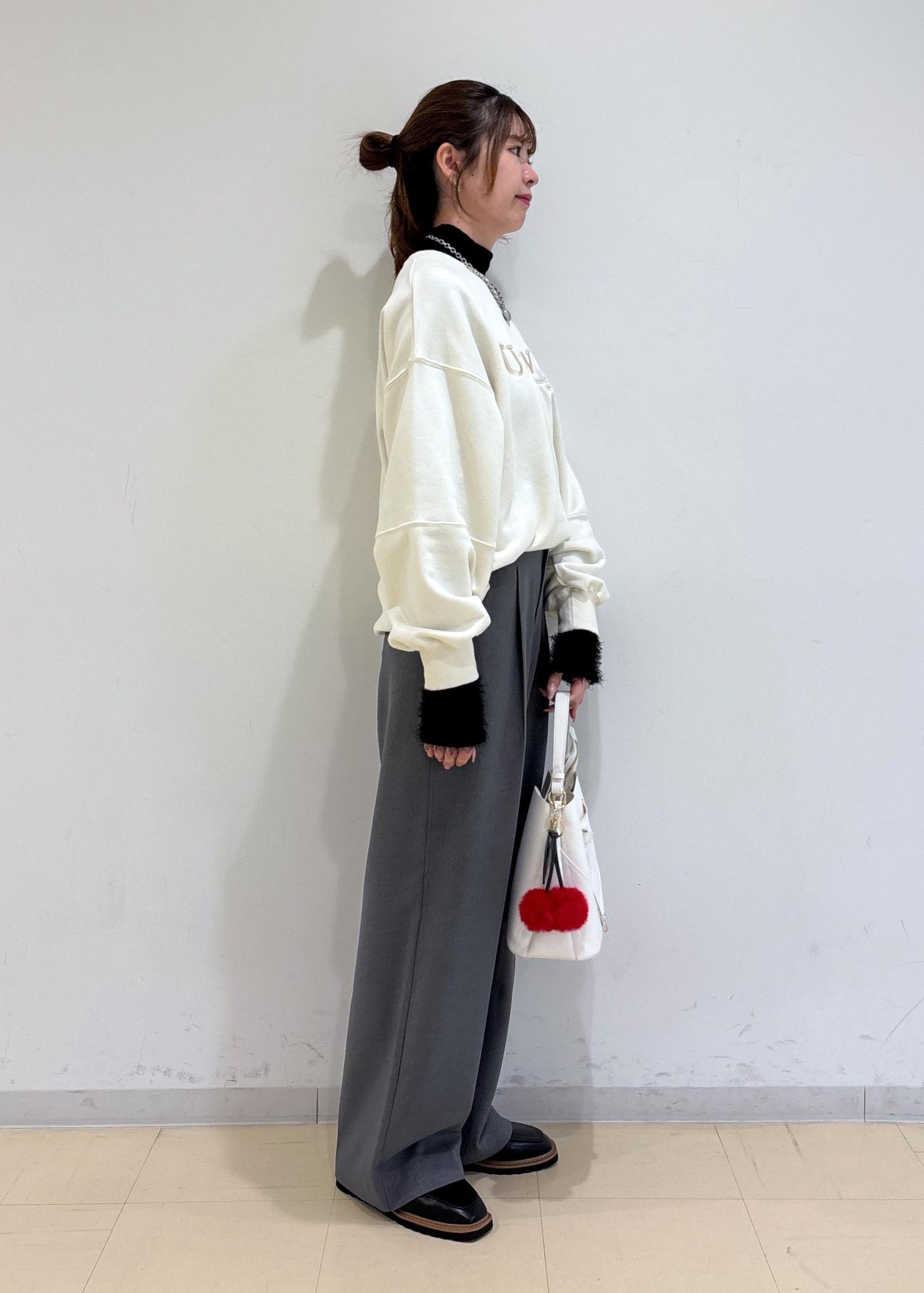 スウェットのインナーにシアータートルニットを合わせるだけでオシャレ感アップします。