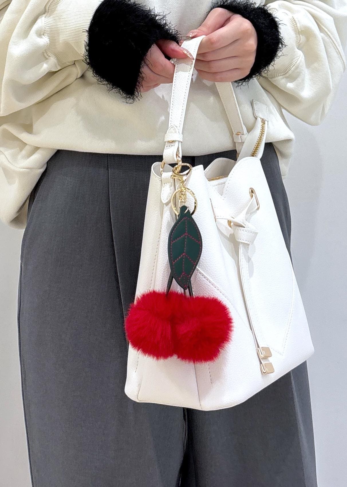 バッグに付けたさくらんぼチャームも差し色になりポイントです!