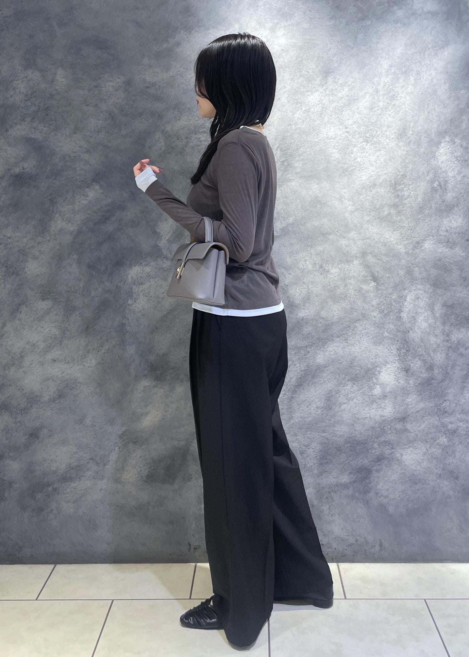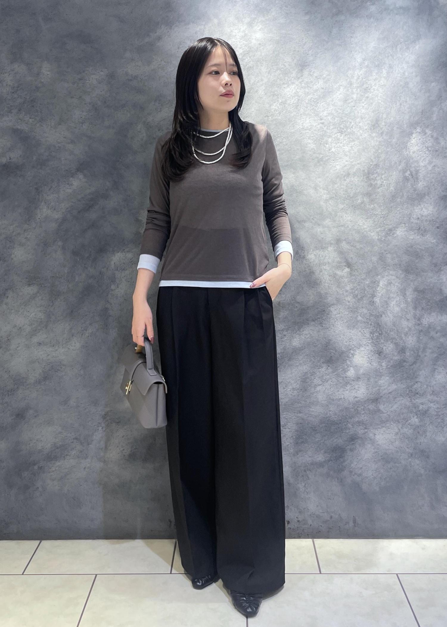 160cmでMサイズ着用。くるぶしが隠れる丈感です。