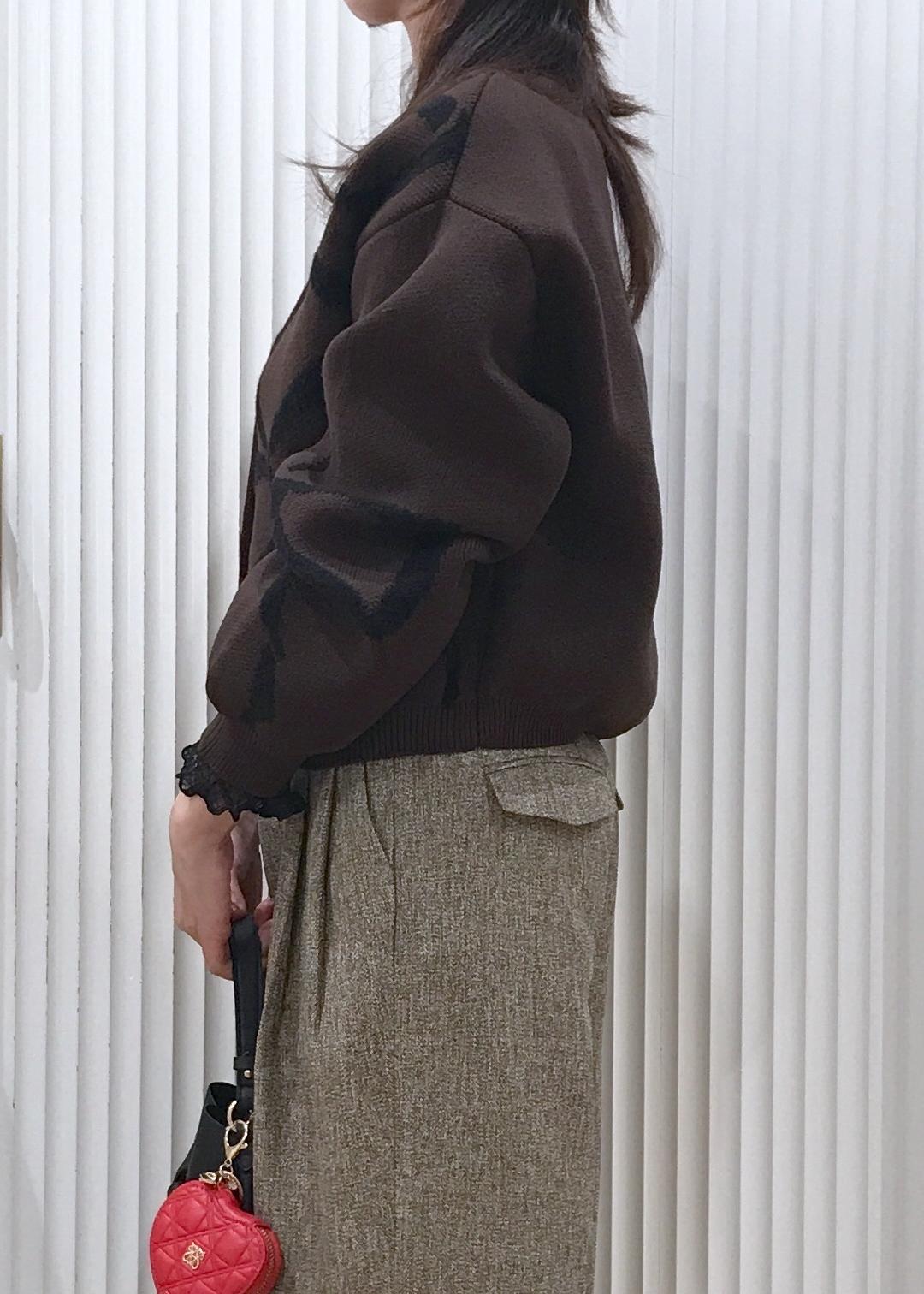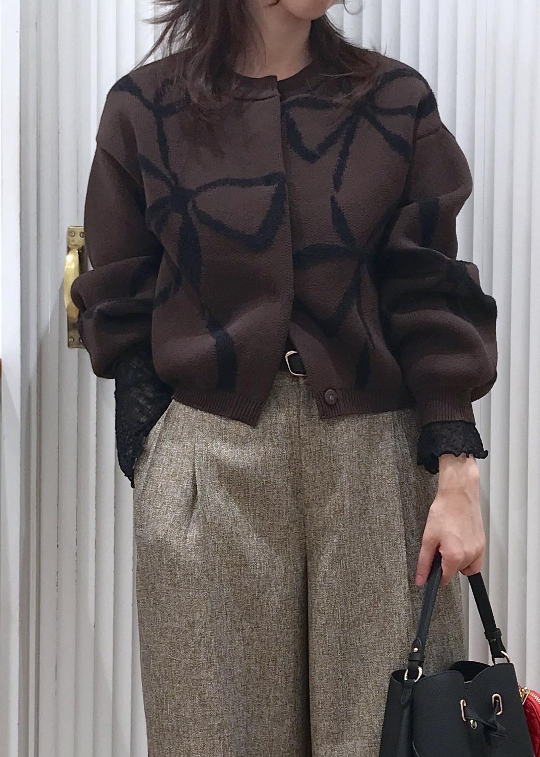 VISリボンモチーフジャガードカーディガン/イージーケアダークブラウン / F¥6,919レビュー私の身長で腰にかかる着丈感です。