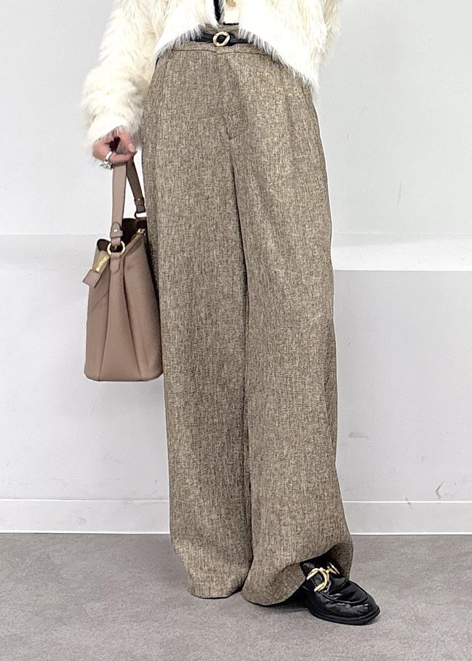 VISツイード2タックワイドパンツブラウン系 / M¥4,612レビューツイードタッチの季節を感じるワイドパンツ♪軽くてさらっとした着心地で、端境期から秋まで活躍、中にタイツを履いて冬とゆるやかシルエットなので長く着回しが出来ます◎サンプルの為Mサイズ着用、全体的にゆったりめ、着丈は足首が隠れる長さでした。