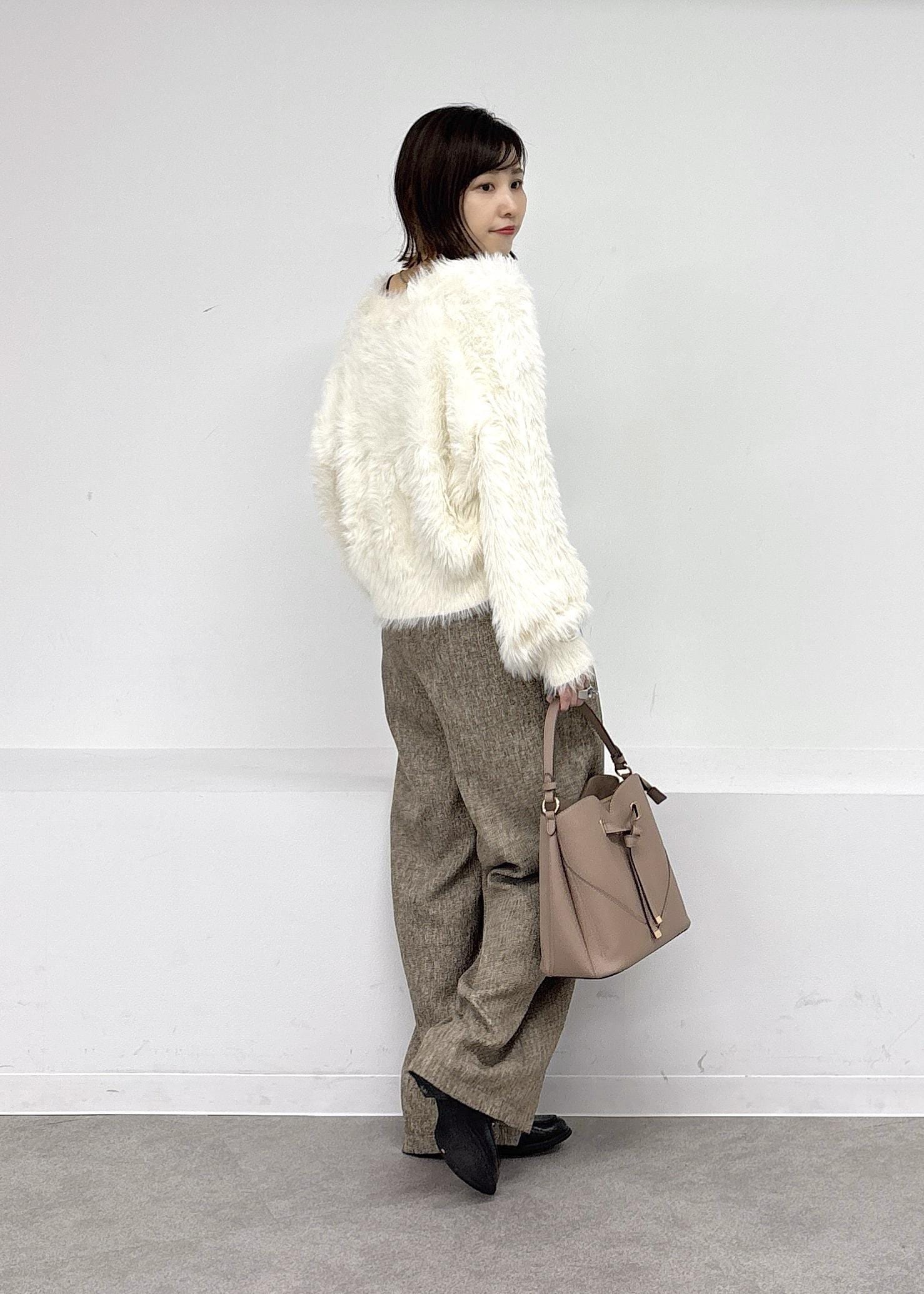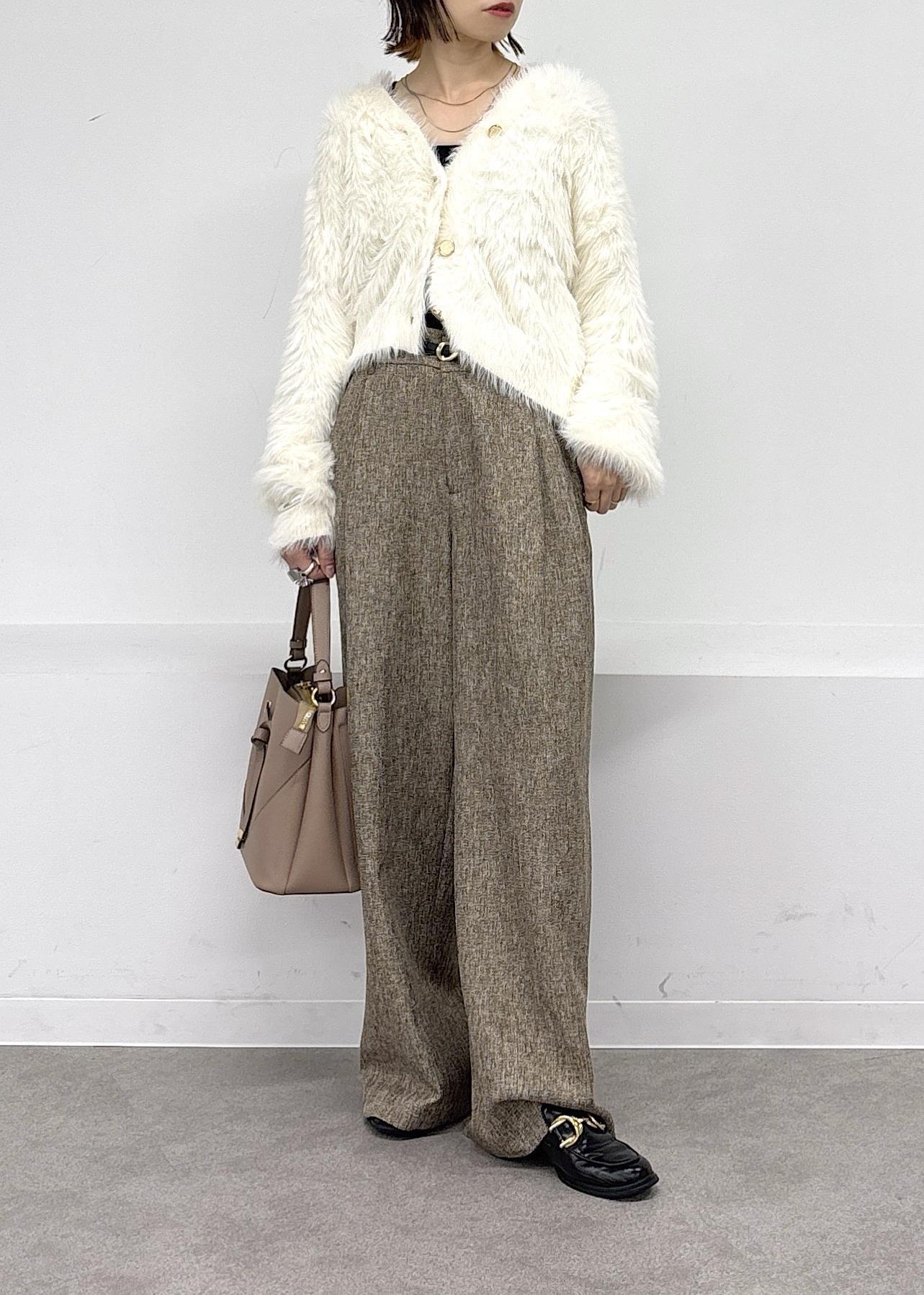 毎シーズン好評のラビットファーカーデ♪とても柔らかくてふわふわな肌あたりで季節を感じる一枚。ツイードパンツ、ローファーでカジュアルな印象にまとめました◎秋から冬まで着たい大人カジュアルコーデ。