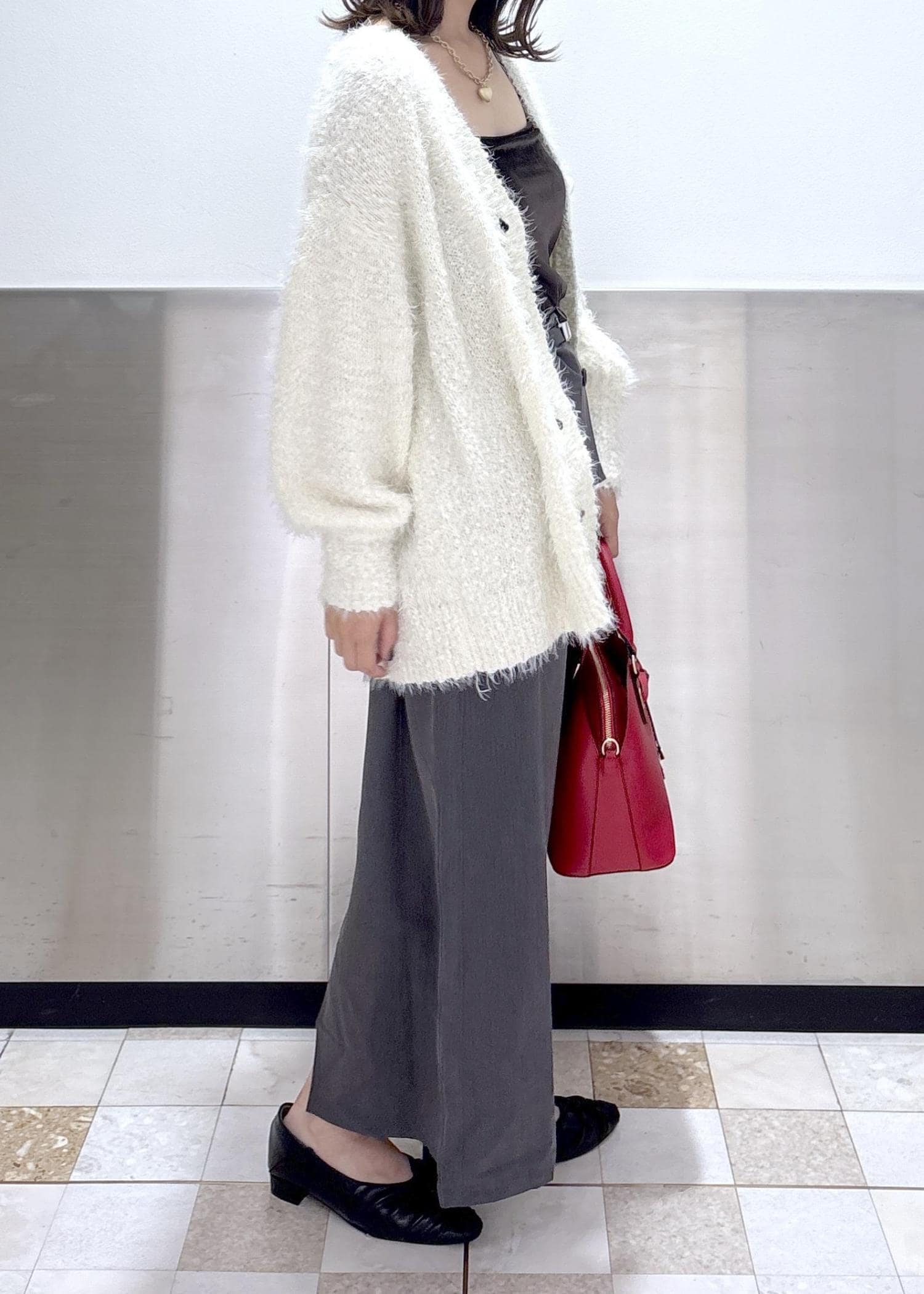 袖も長めでボリュームがあるのでフェミニンコーデにぴったりです!