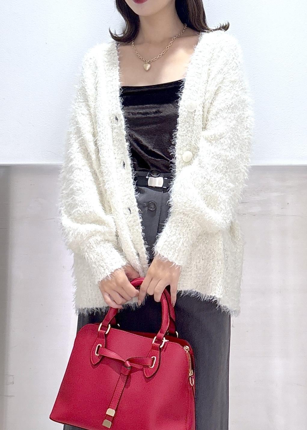 ポップコーンヤーンラメフェザーニットカーディガン/WEB限定FSサイズ