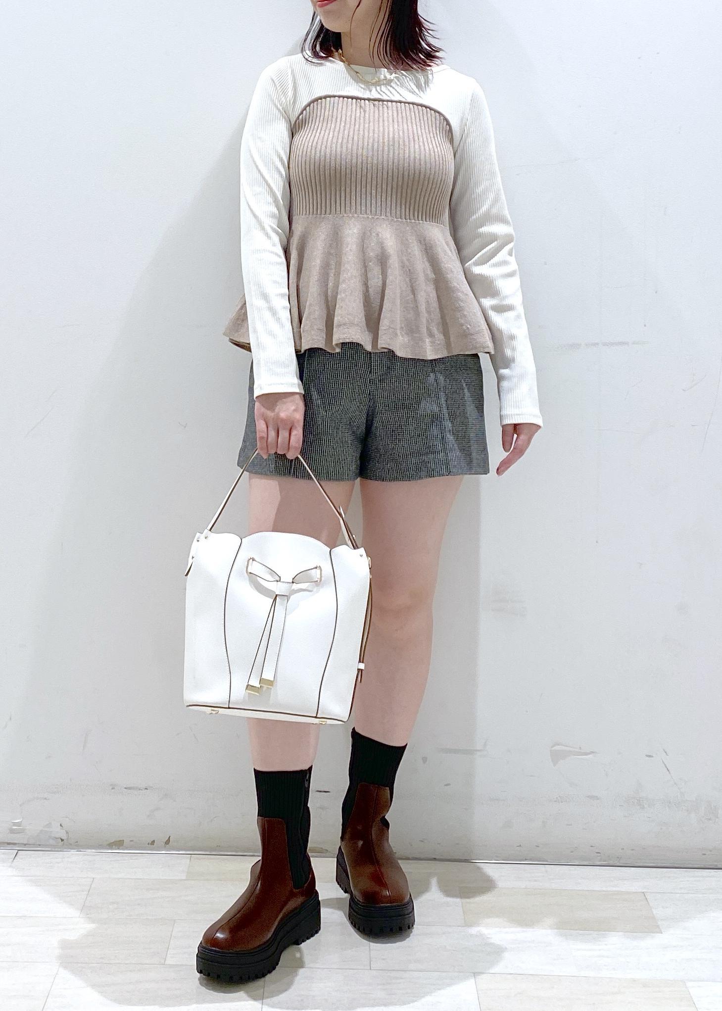 ペプラムシルエットが可愛いニット。