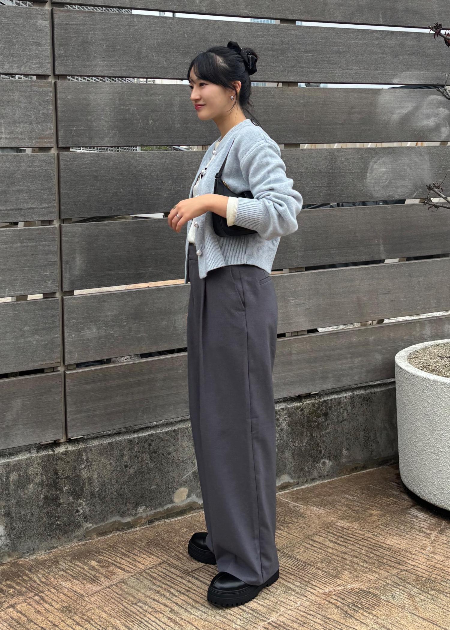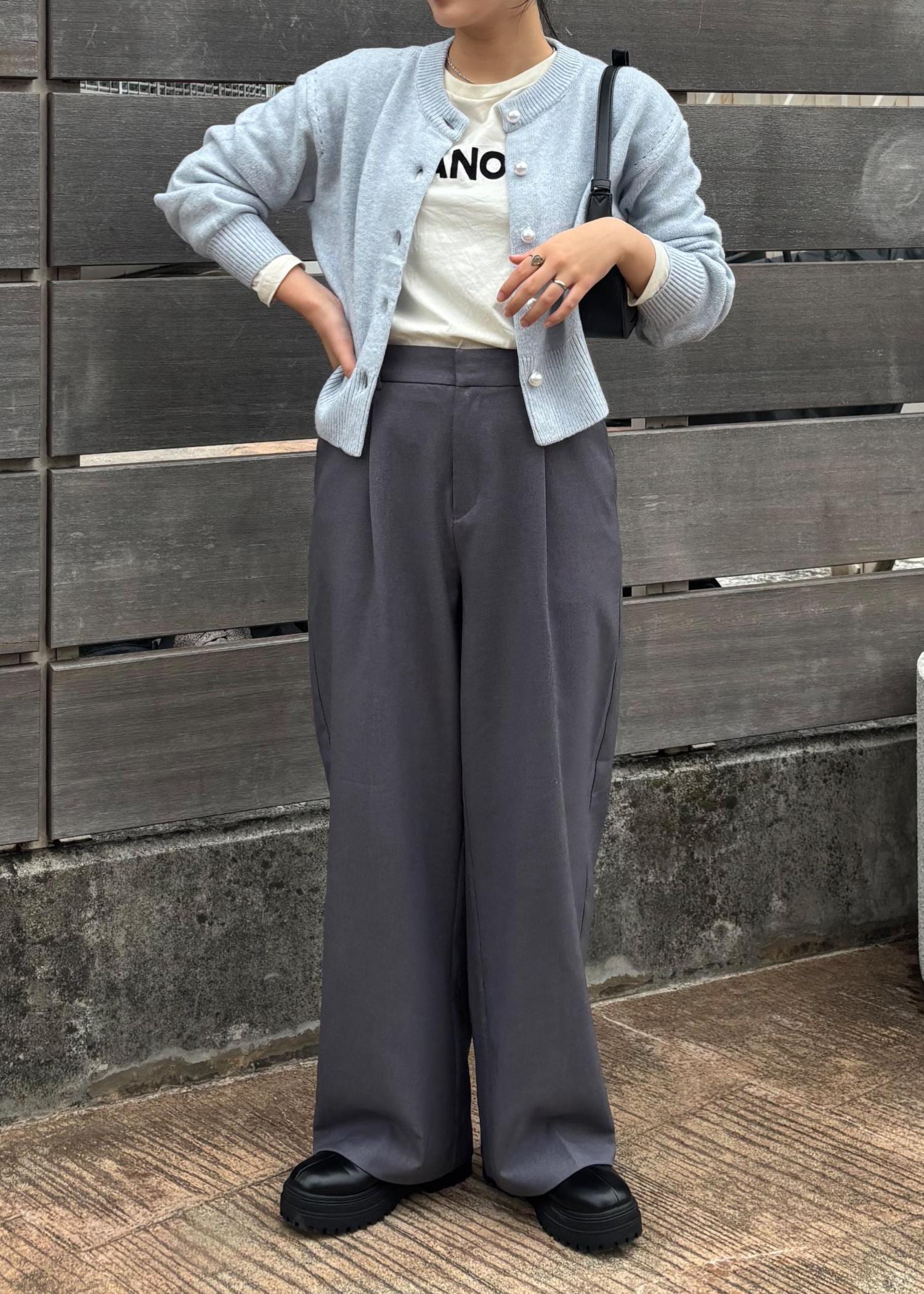 広がりすぎないワイドシルエットで、オンオフ着回せます◎
