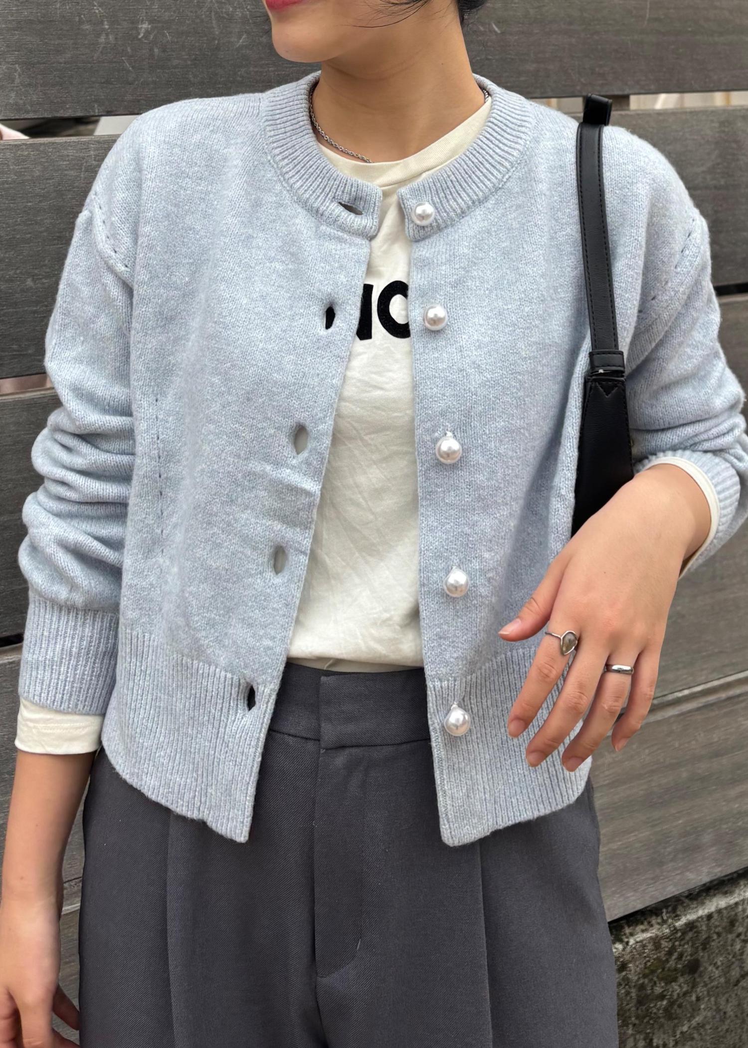 VISハートアソートパール釦ラメミックスカーディガン/イージーケア・一部WEB限定カラーブルー / F¥5,489レビューパールボタンが可愛いカーディガン!