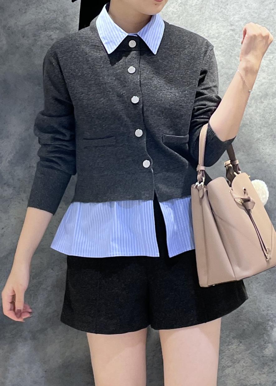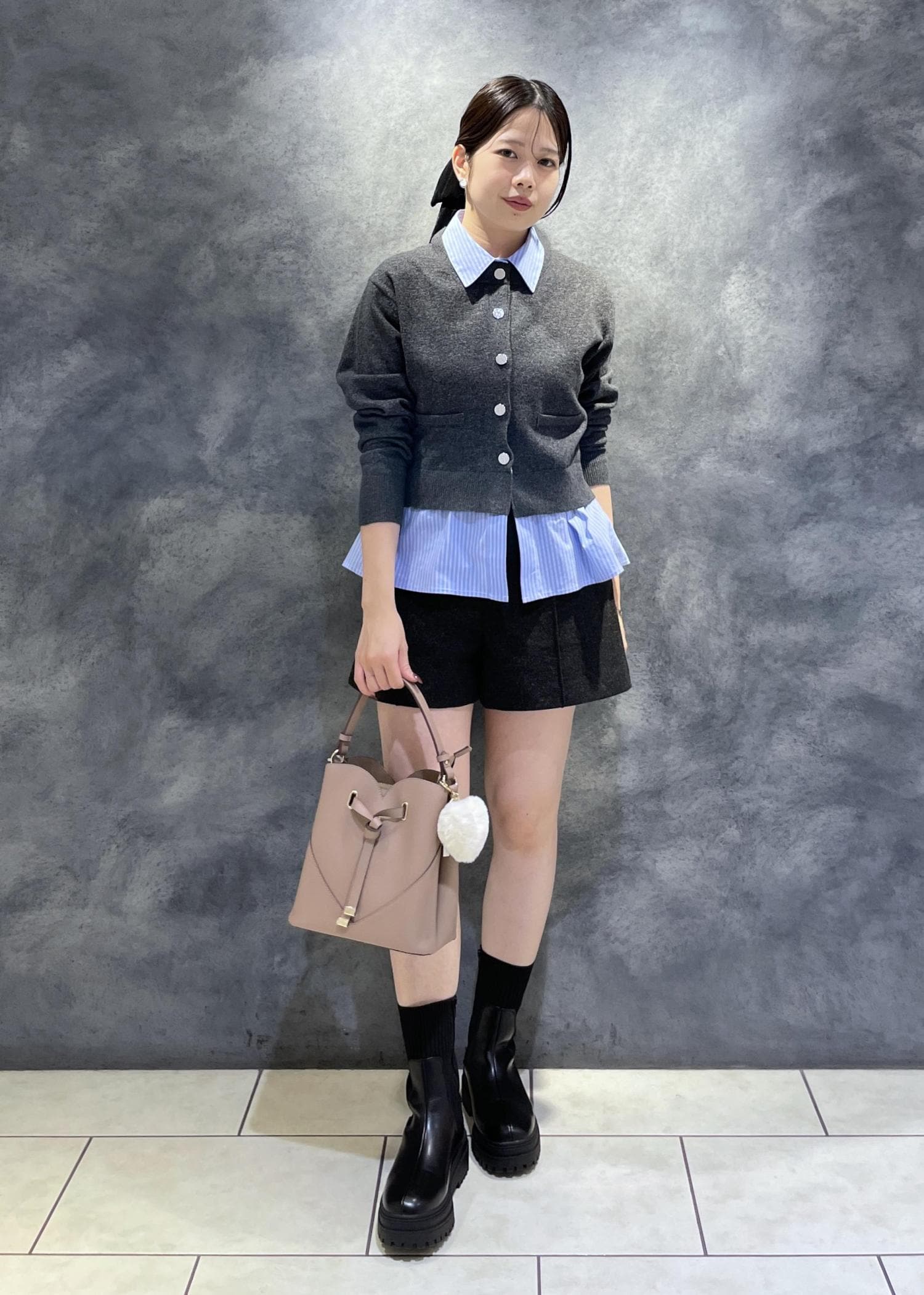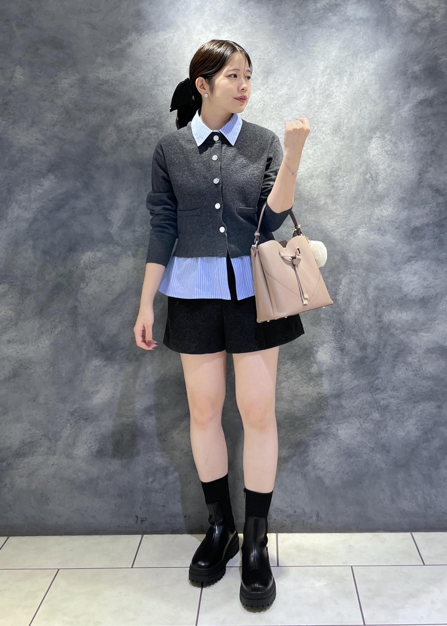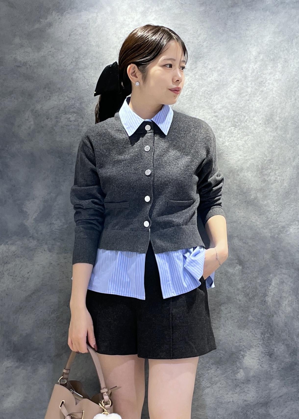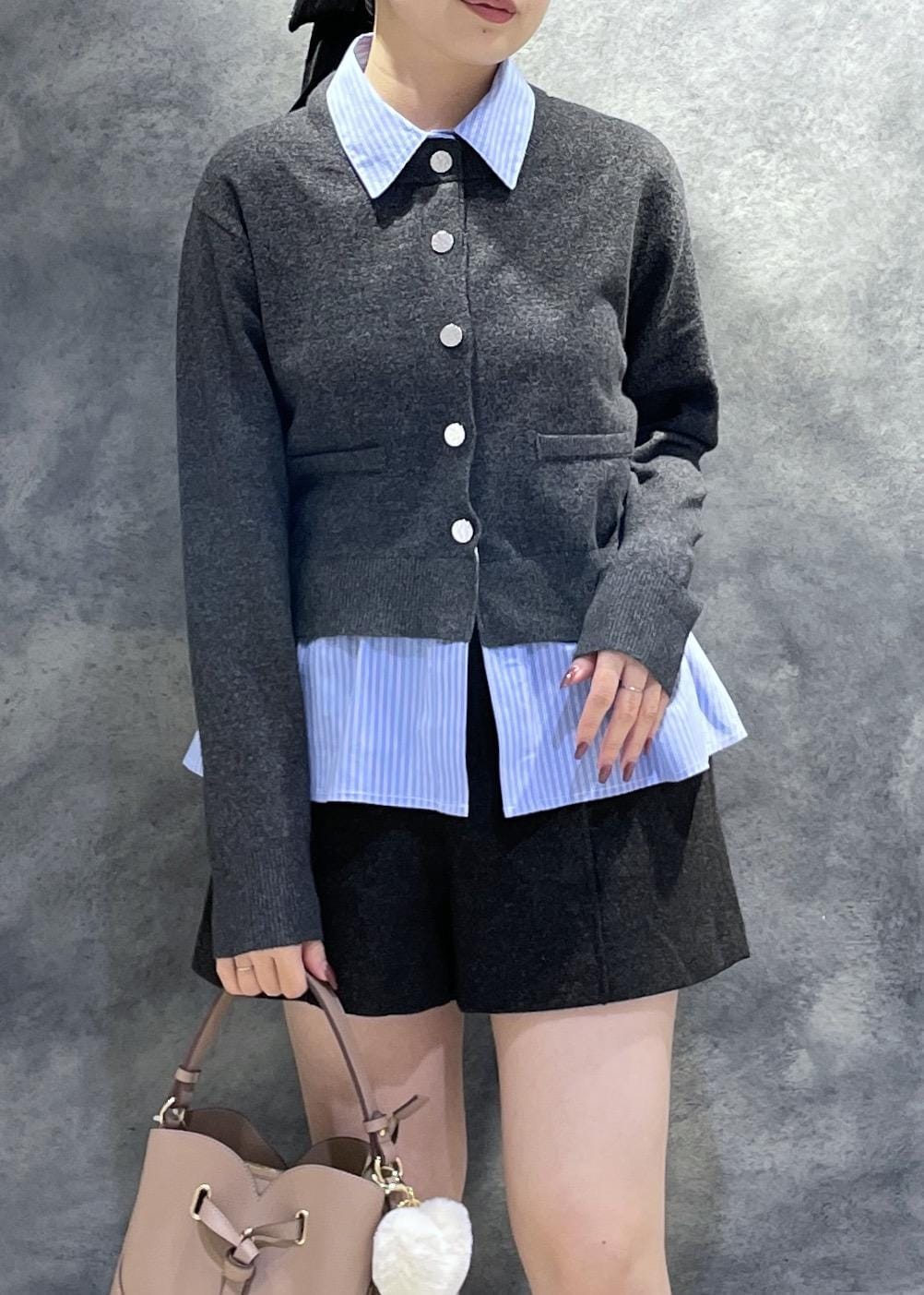 VISシャツレイヤード風メタルボタンカーディガンチャコール / F¥6,589レビュー身長160cmで腰骨が隠れる丈感。