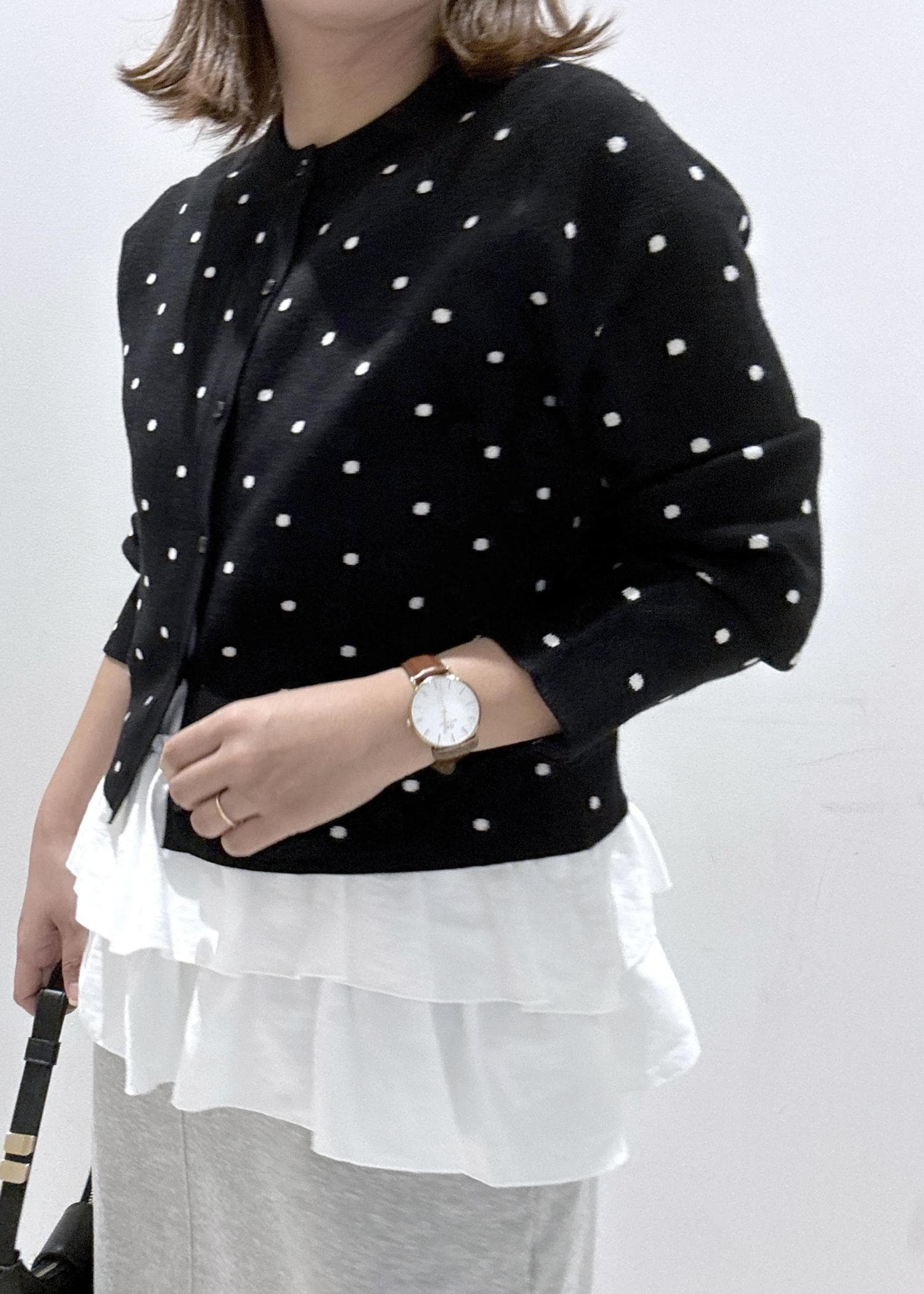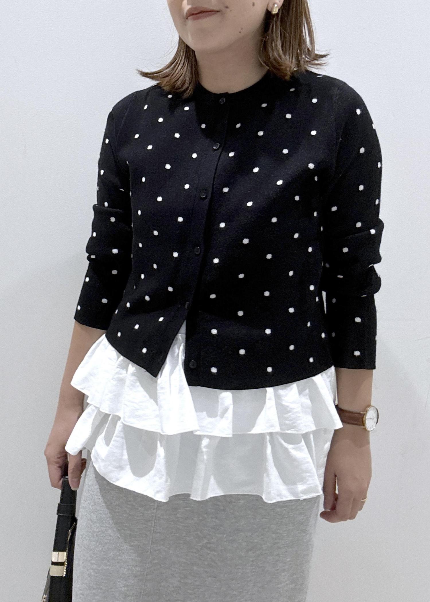 VISドットジャガードカーディガンブラック系 / F¥5,929レビューコンパクトなシルエットのカーディガンで、身長155cmの私はウエストにかかる着丈でした。