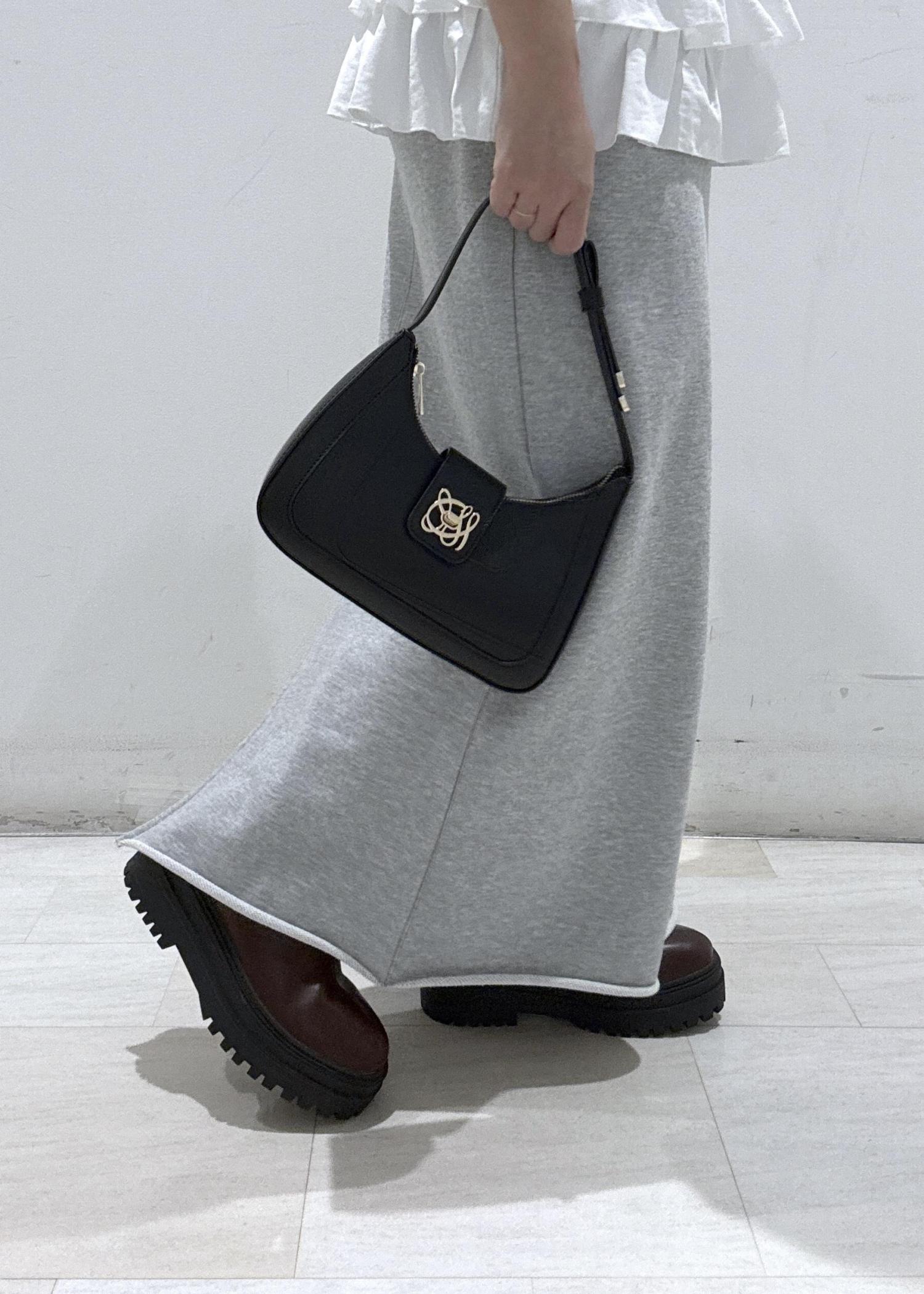 フロントに斜めストラップが付いているので、コーディネートのアクセントになります。