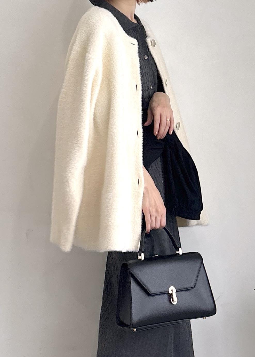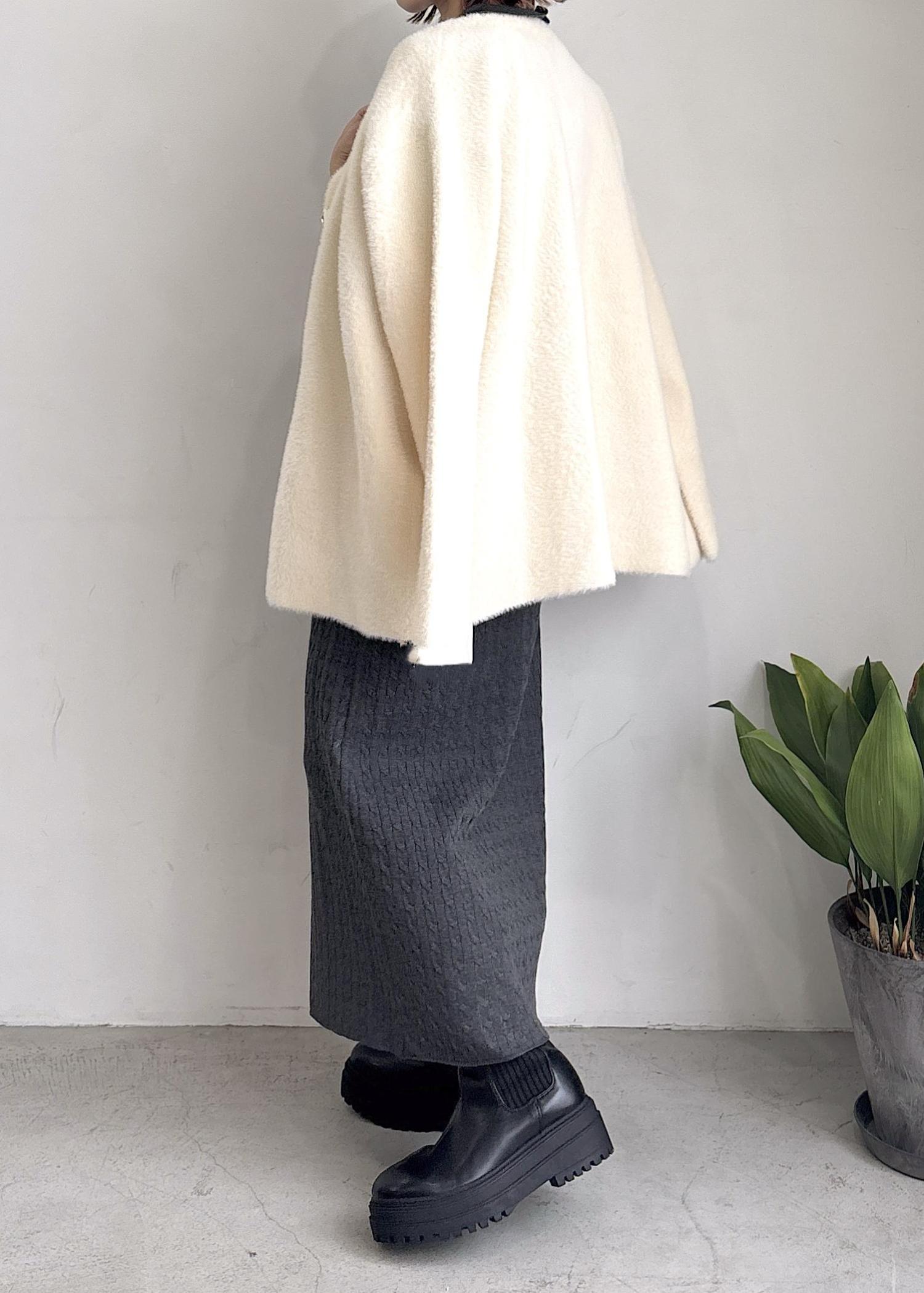 VIS接結メタルボタンミニフェザーニットコートオフホワイト / F¥9,999レビューふわふわ柔らかなミニフェザーのアウター♪昨年も同様の素材がとても人気で、とても着心地◎程よい伸縮性があり、けれど形崩れはしにくい上品なデザイン。ニュアンスメタルのボタンも高みえします。ゆったりシルエットでコート変わりに気軽に合わせられるデザインなのも嬉しいポイント◎全体的にゆとりがあり、着丈はお尻が隠れる長さでした。