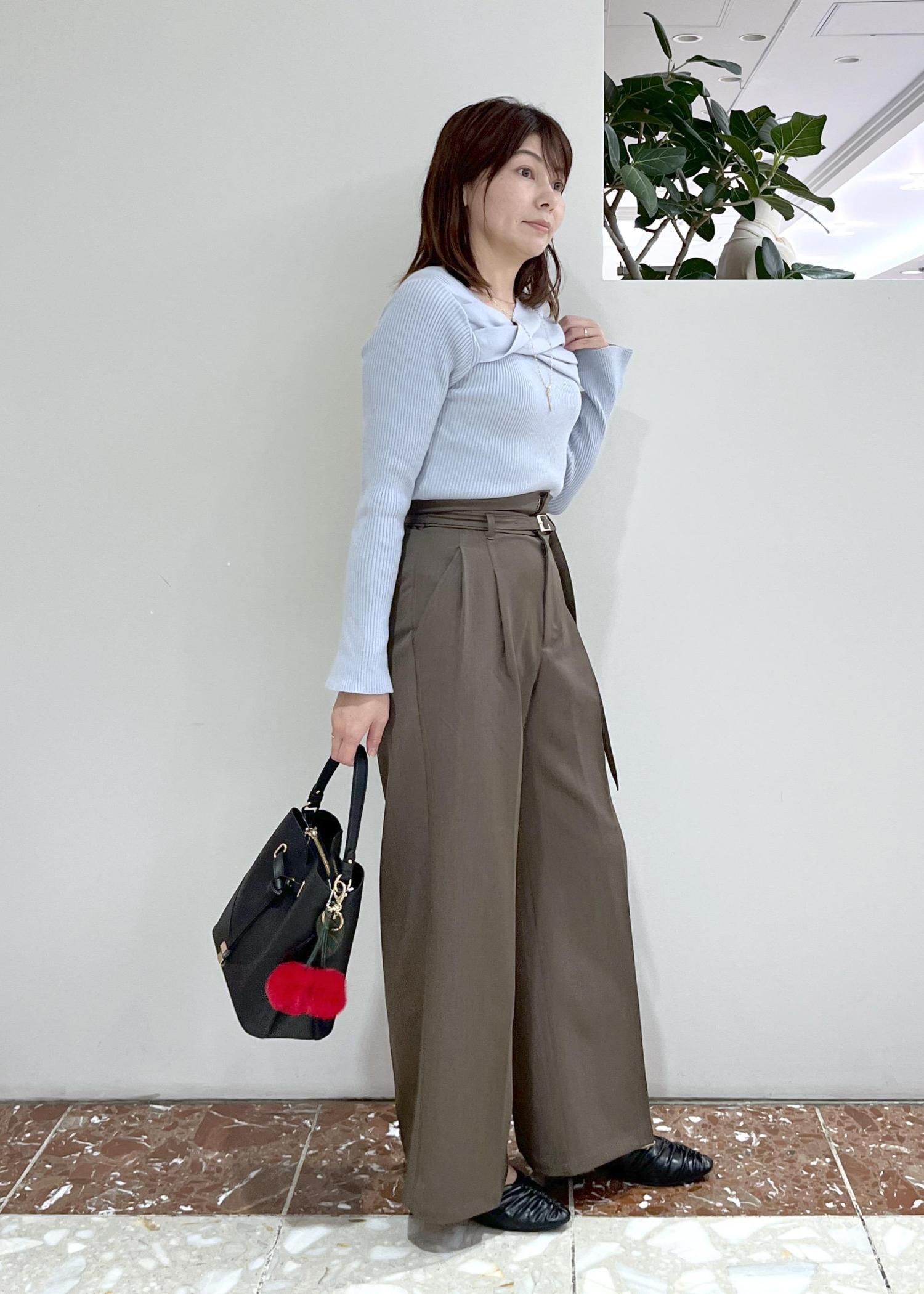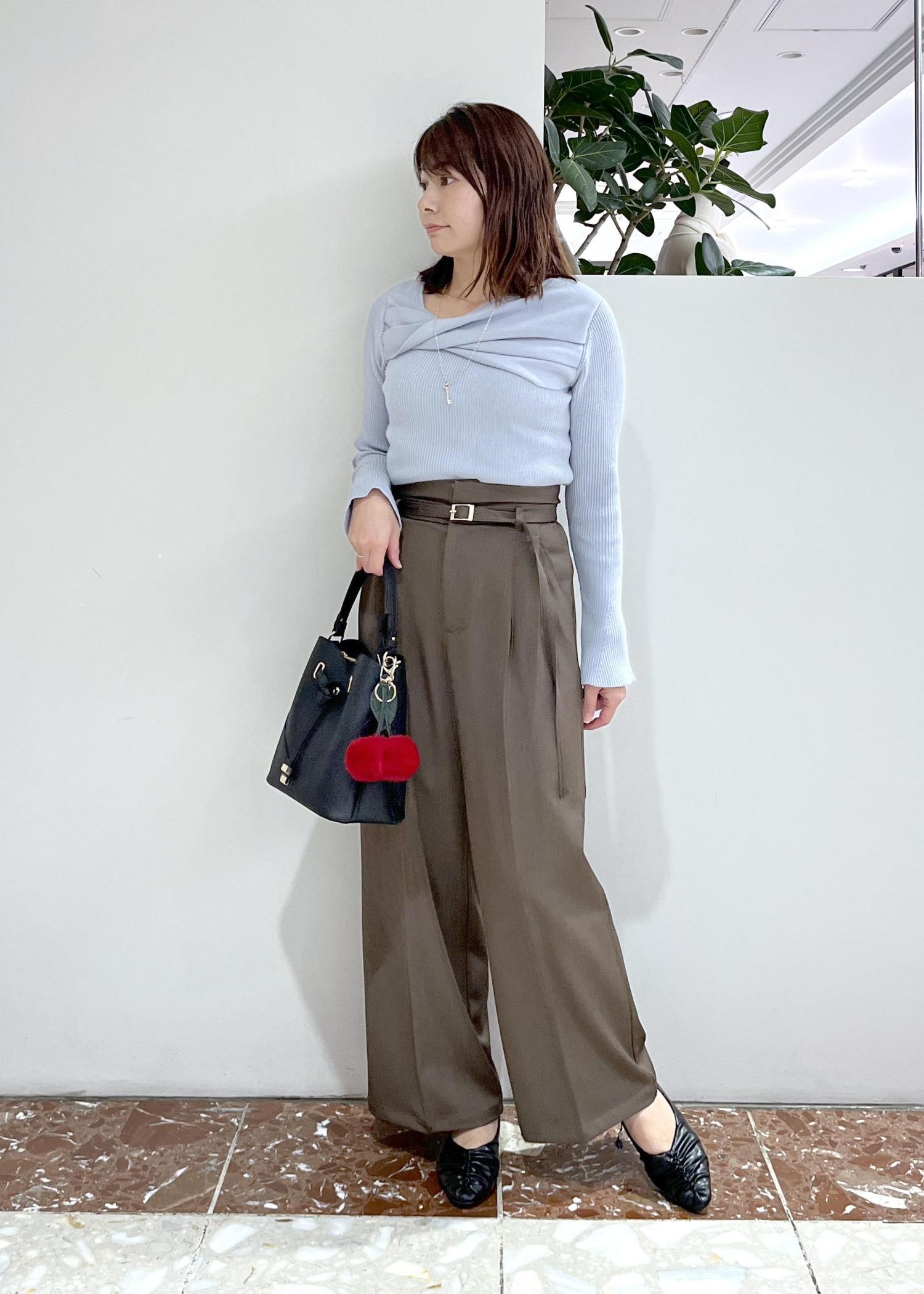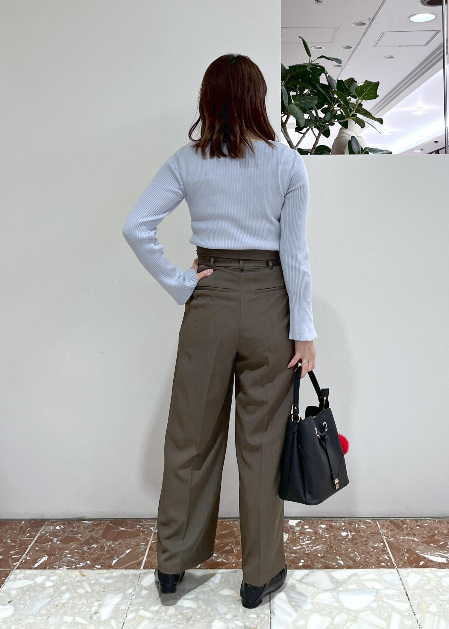 VISベルトディテールタックワイドパンツ/イージーケアチャコール / S¥6,589レビューウエストベルト付きのサラッとしたパンツです。ワイドパンツですが、サラッとした生地なのでストンと落ちる生地でキレイ目として履けます。少しハイウェストなのでスタイルアップして見えます。