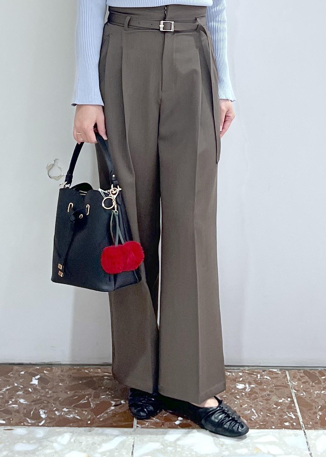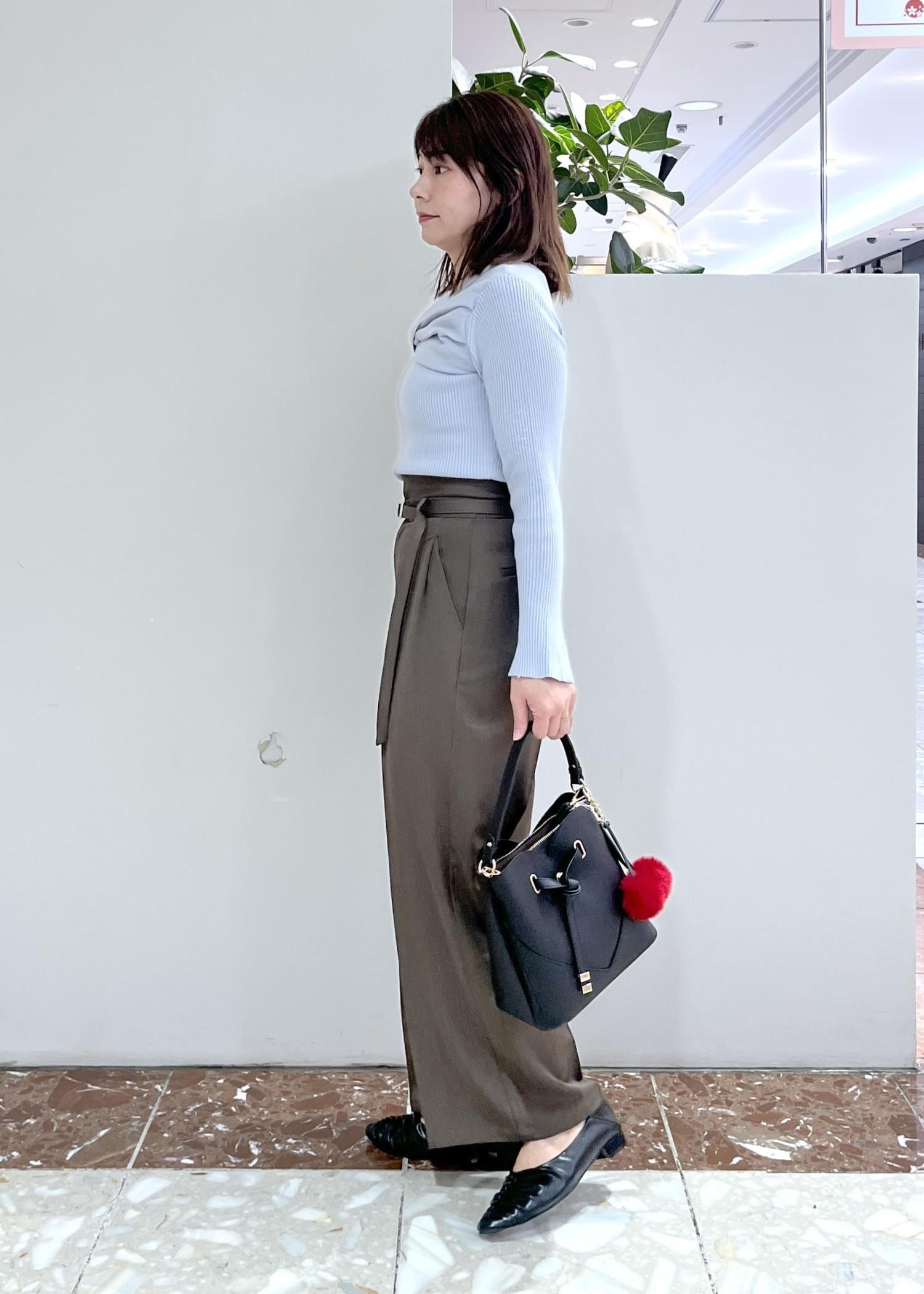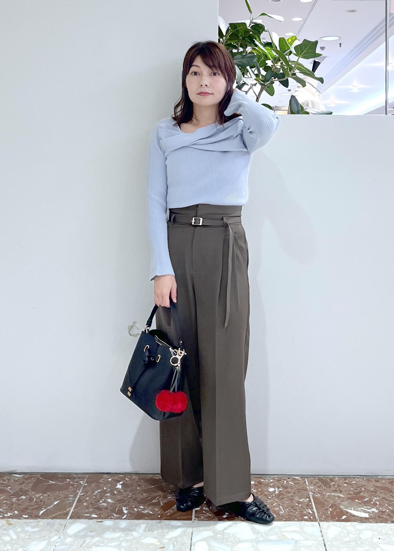 VISベルトディテールタックワイドパンツ/イージーケアチャコール / S¥6,589レビューウエストベルト付きのサラッとしたパンツです。ワイドパンツですが、サラッとした生地なのでストンと落ちる生地でキレイ目として履けます。少しハイウェストなのでスタイルアップして見えます。