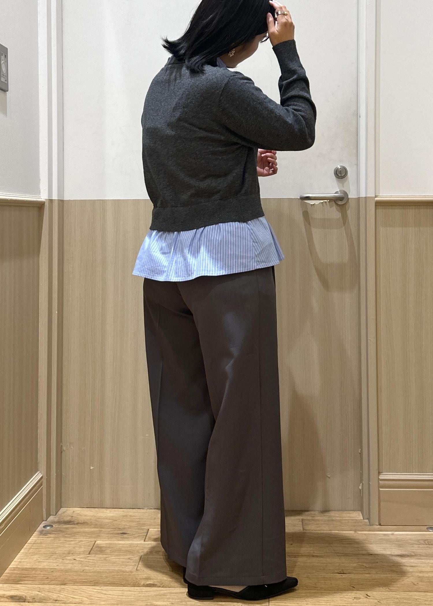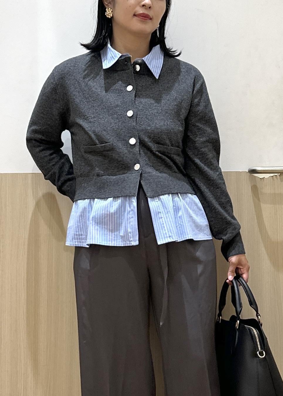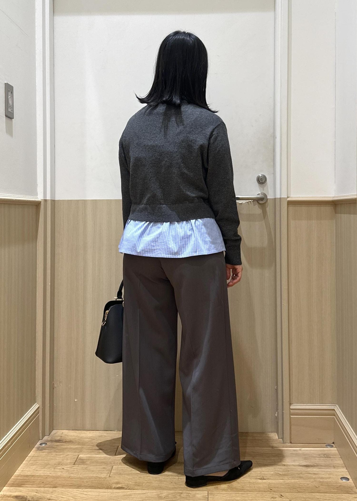 VISシャツレイヤード風メタルボタンカーディガンチャコール / F¥6,589レビュー157センチ、骨格ウェーブで着丈はヒップ半分隠れるくらいです。