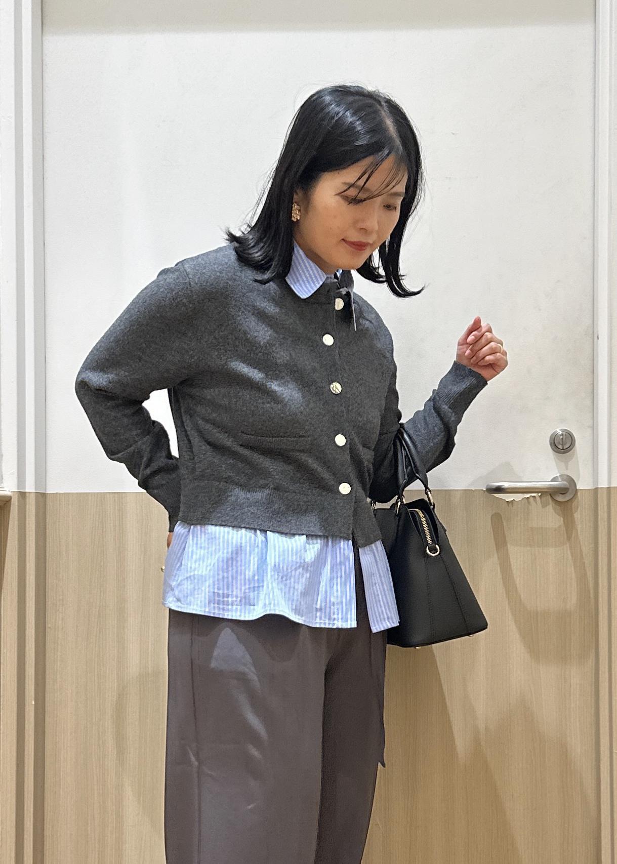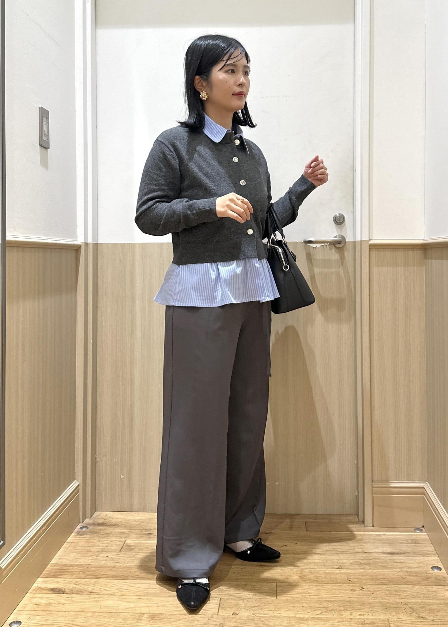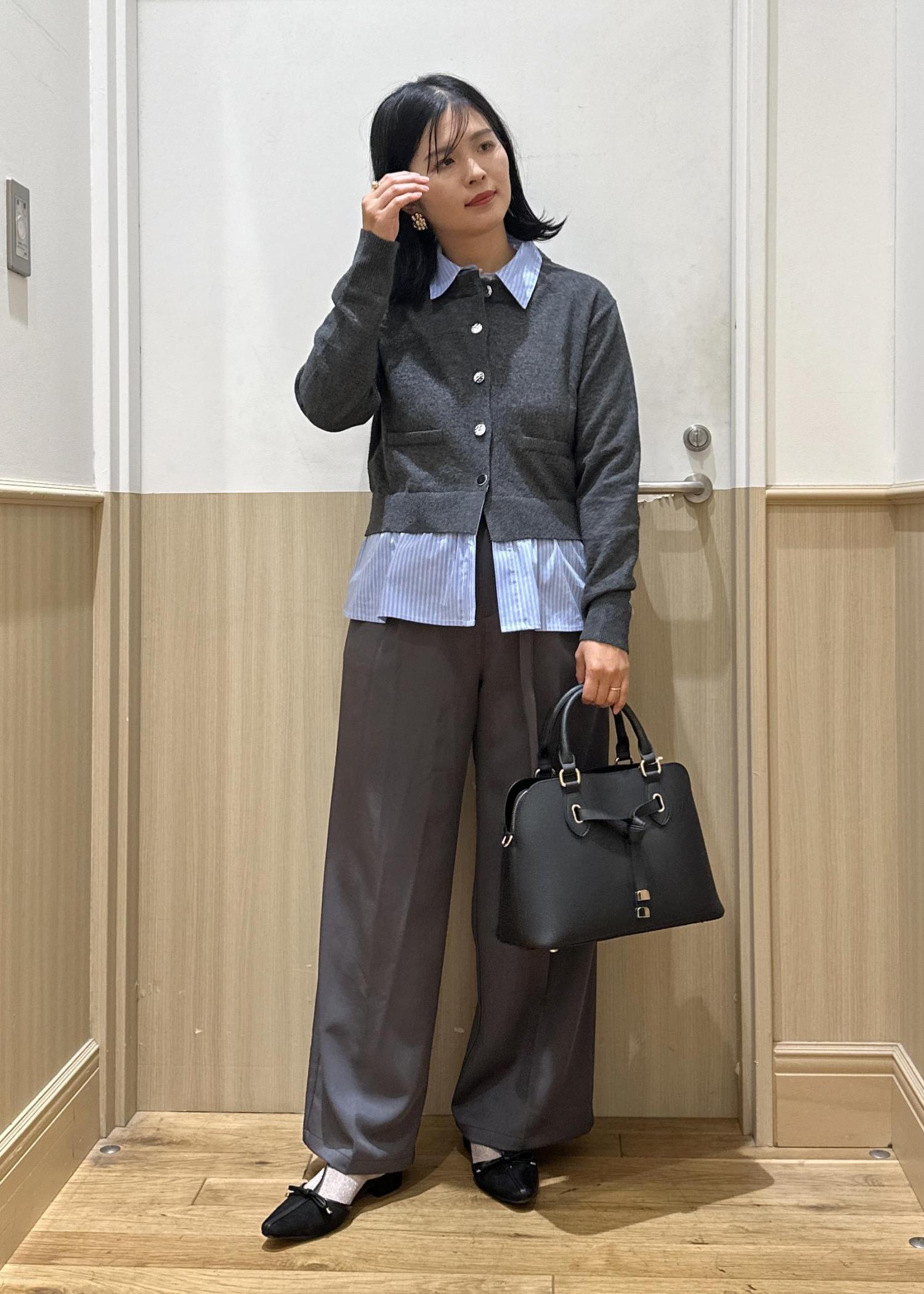 VISシャツレイヤード風メタルボタンカーディガンチャコール / F¥6,589レビュー157センチ、骨格ウェーブで着丈はヒップ半分隠れるくらいです。