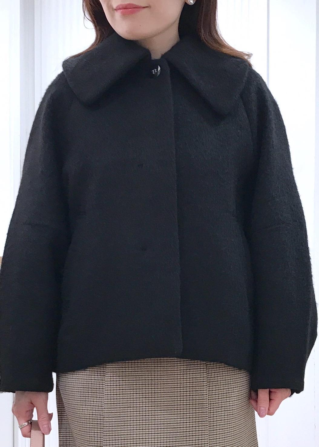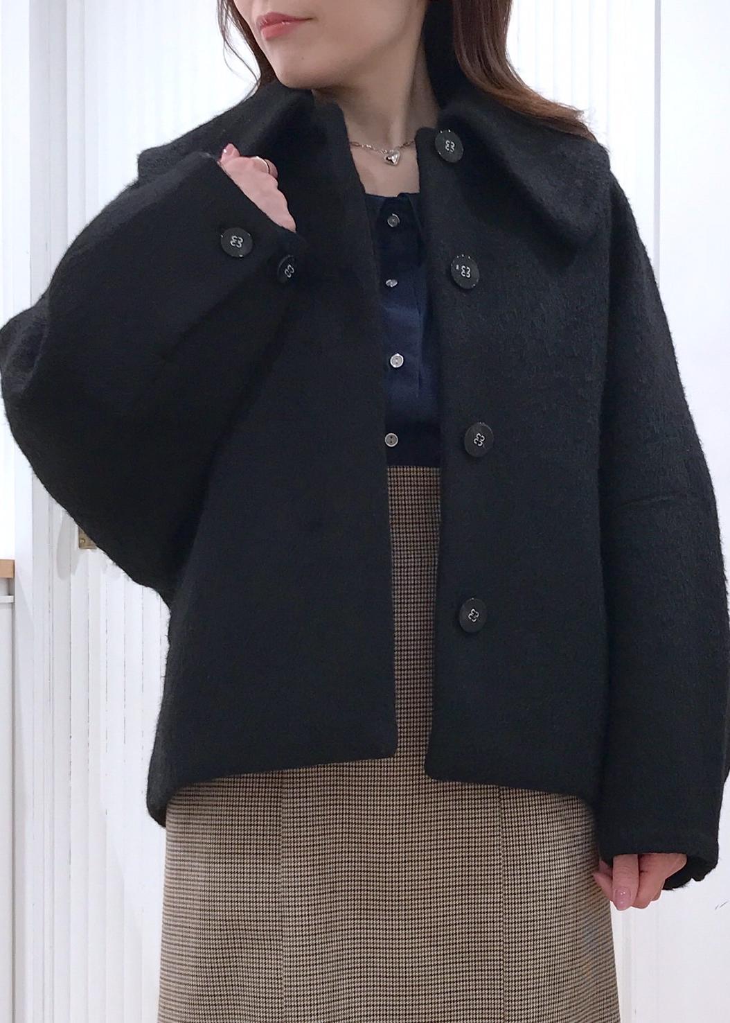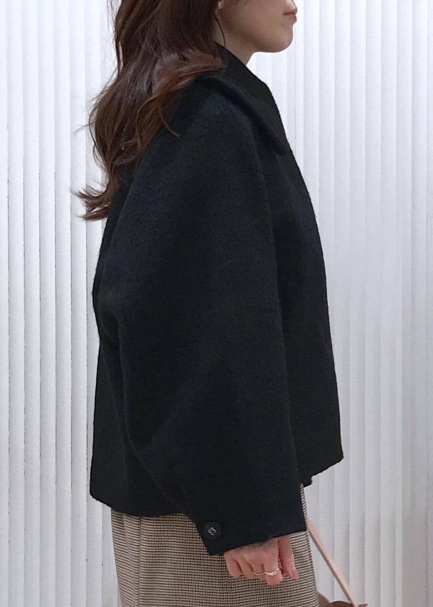 ビッグカラーでトレンド感がありつつ、お尻が隠れるくらいの着丈は着回し力も高くて今季おすすめです。
