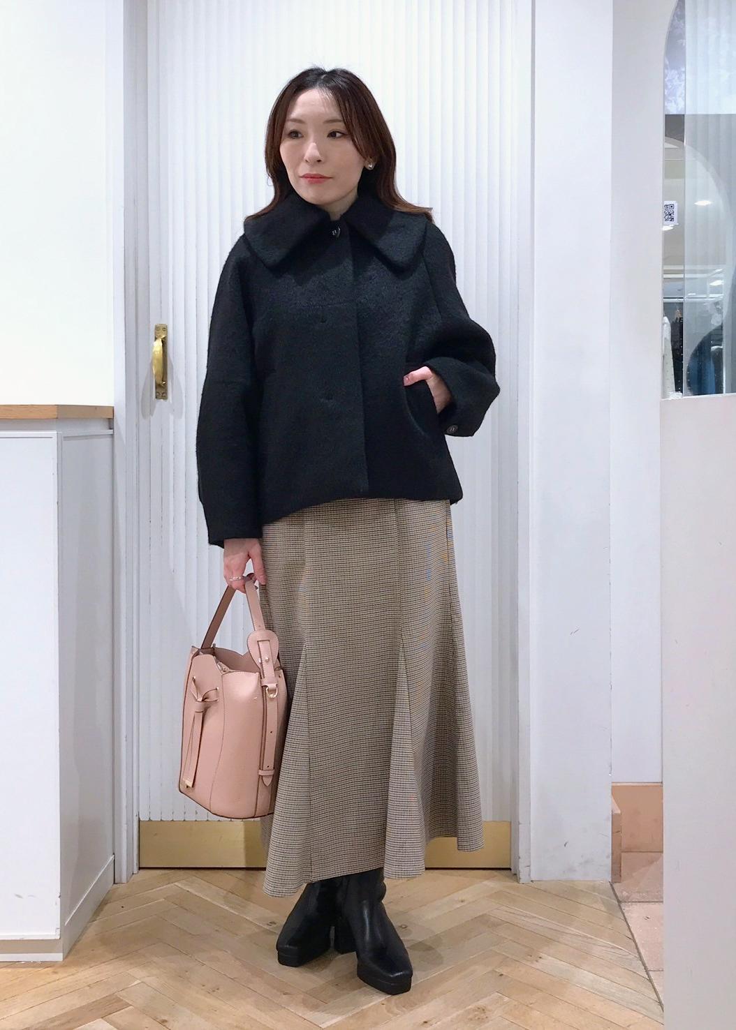 ショート丈アウターはスカートのマーメイドラインが隠れないのでキレイに着られますよ。