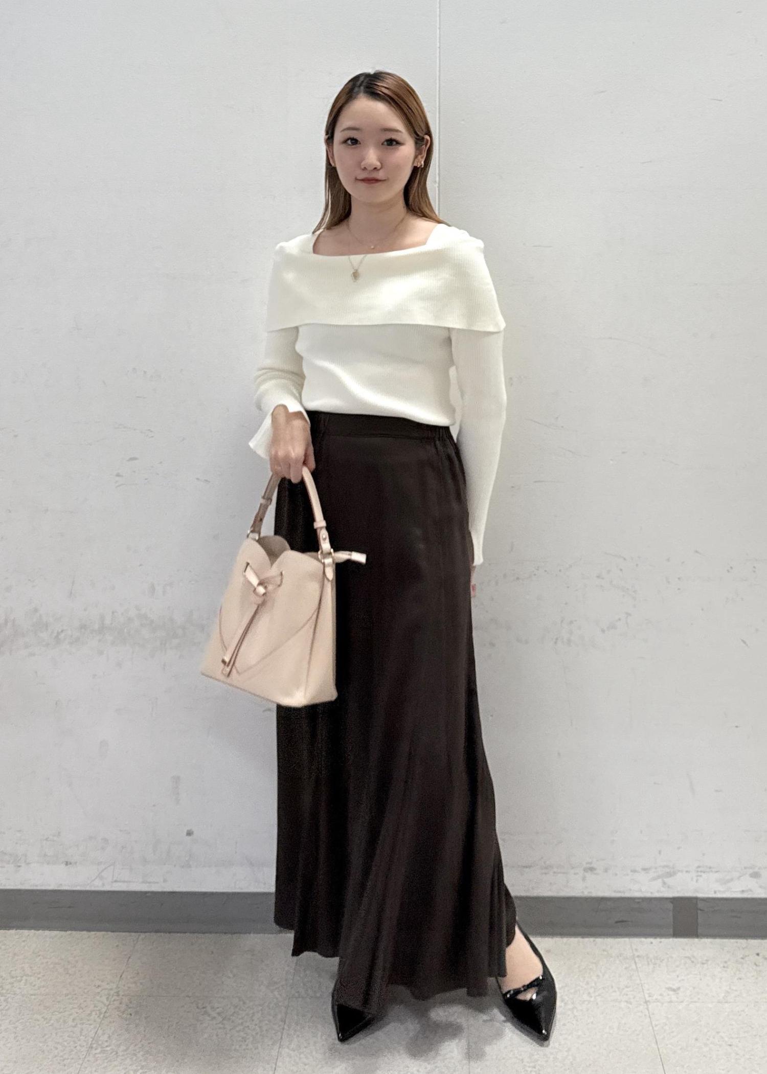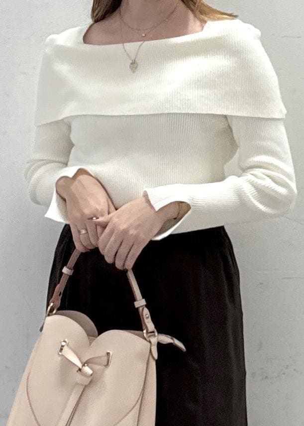 NEW!VIS【美得】オフショルダーモチモチリブニット/好評につき再入荷オフホワイト / F¥5,489レビュー袖元にスリットが入っていて抜け感が出ます☆
