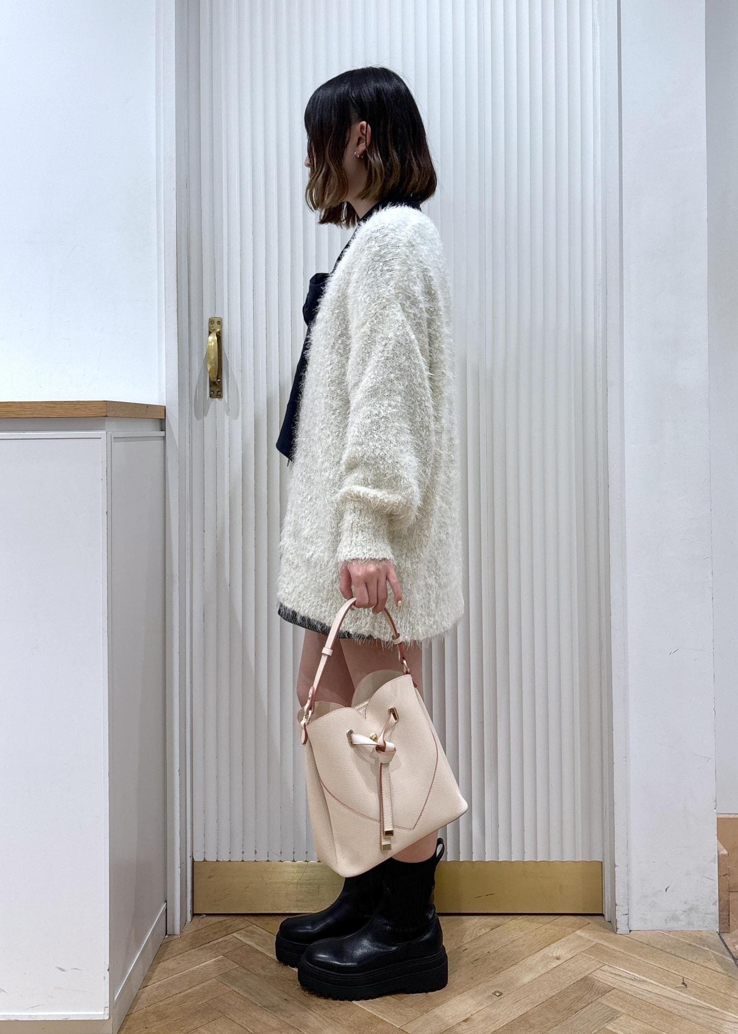 ショートパンツがギリギリ見えるか見えないかの丈感になるのが可愛いです!ブーツを合わせることで足元にボリューム感がでて◎!