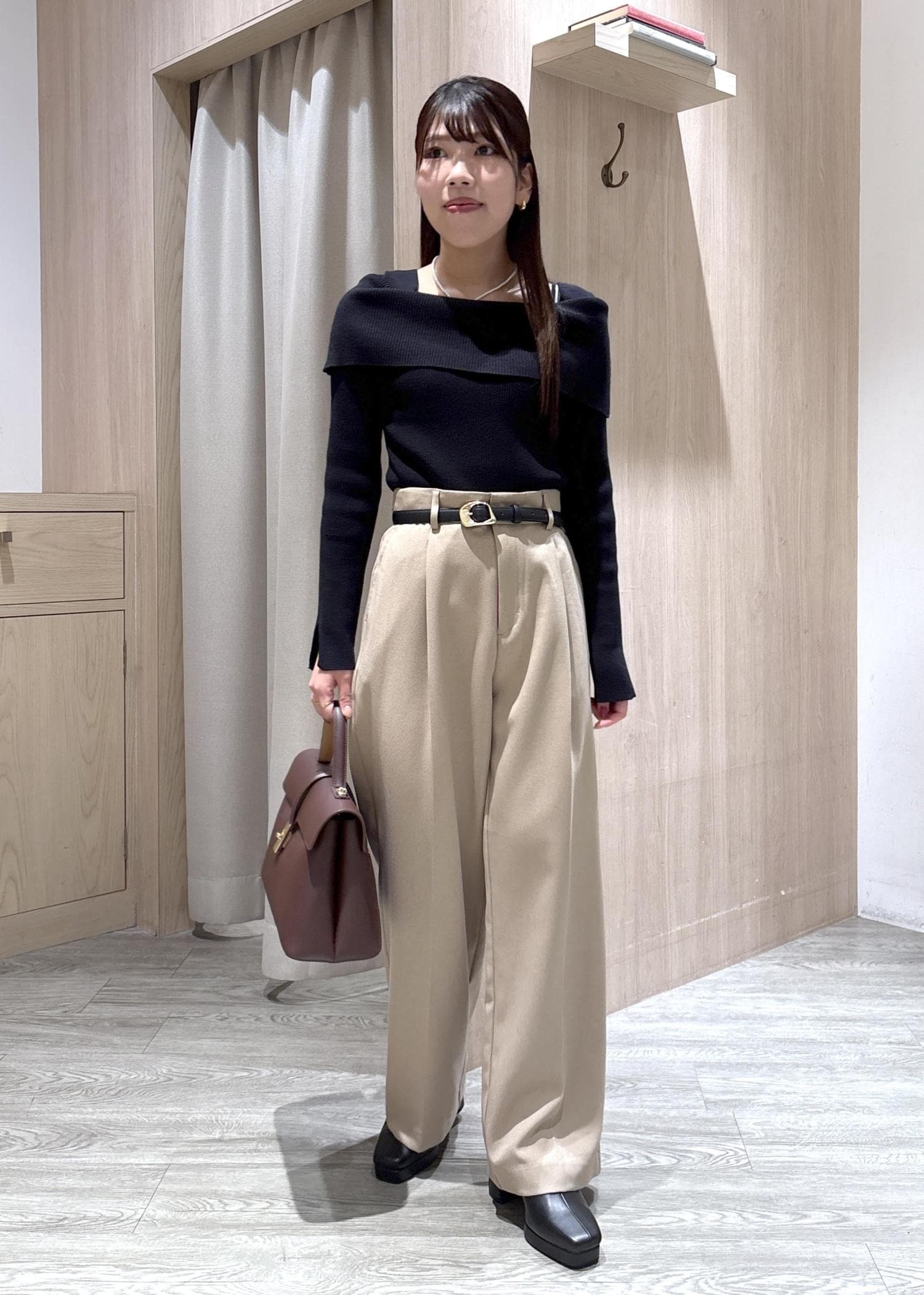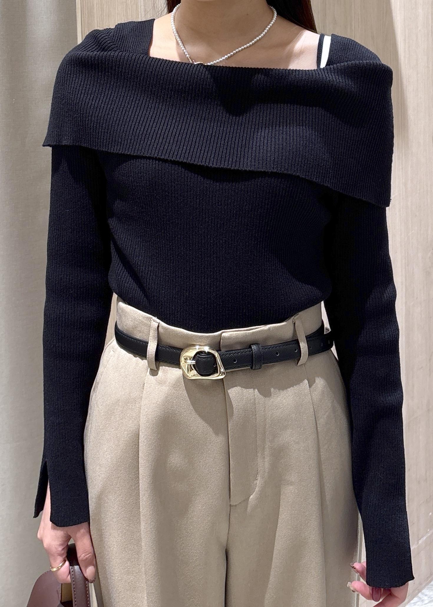 ゴールドのバックルがアクセントになってシンプルなコーデを引き立たせてくれますよ。 -