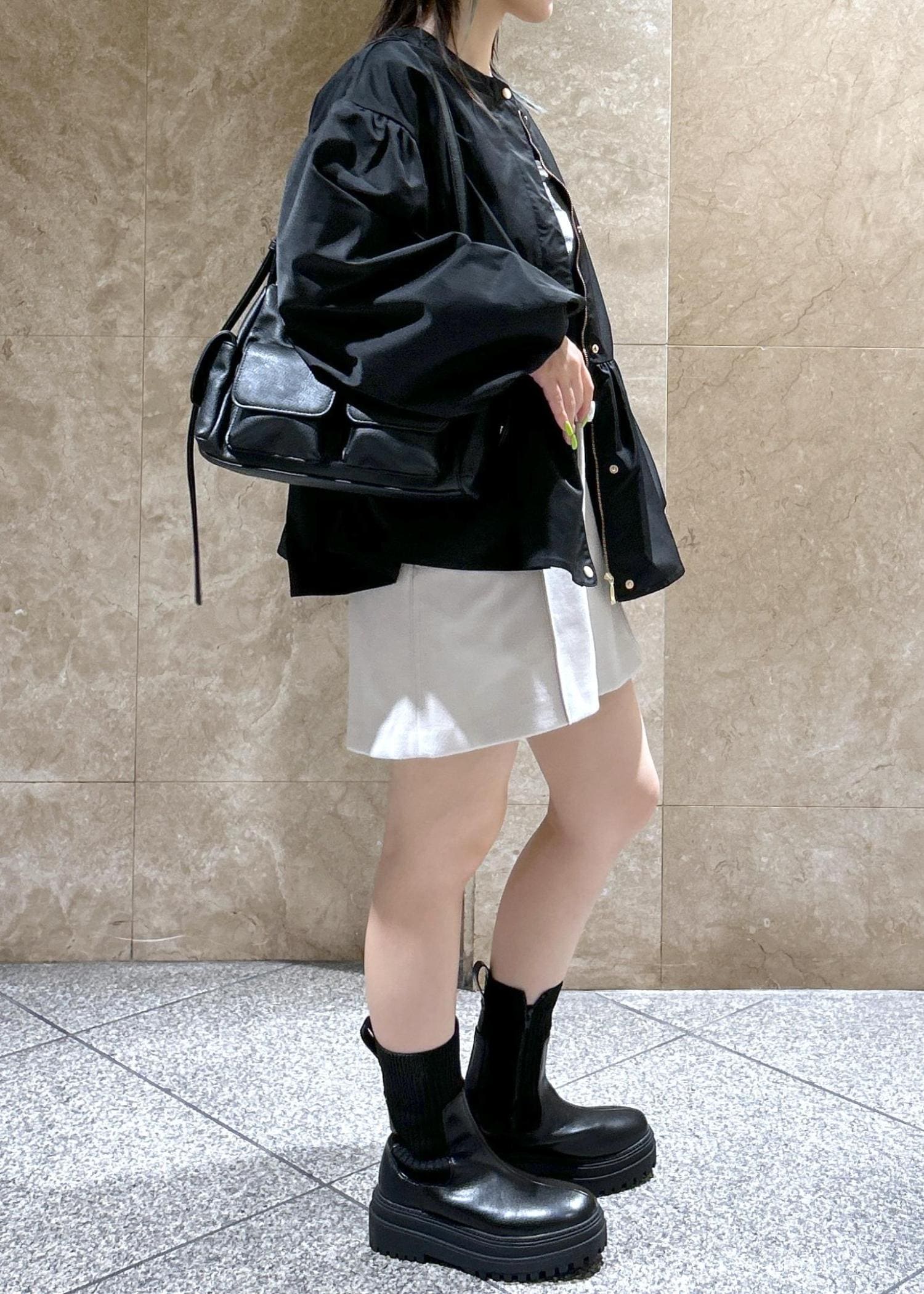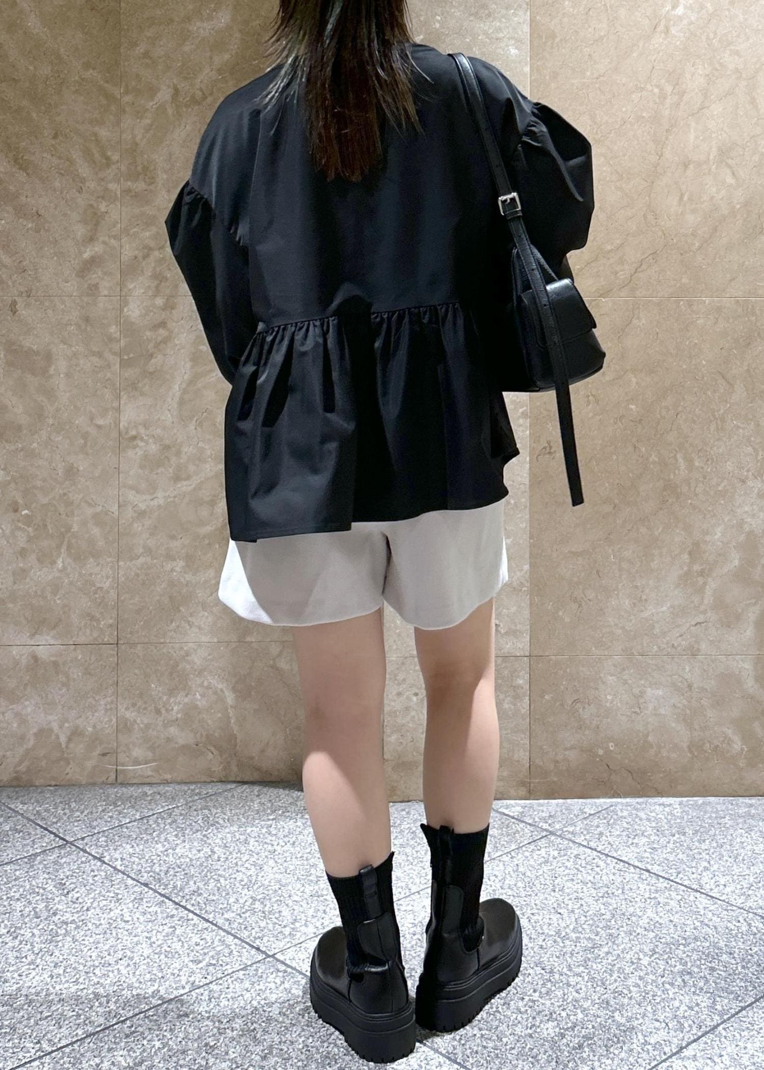 厚底具合は高すぎず低すぎずで、足を長く見せてくれます!ショートボトムスとの相性◎