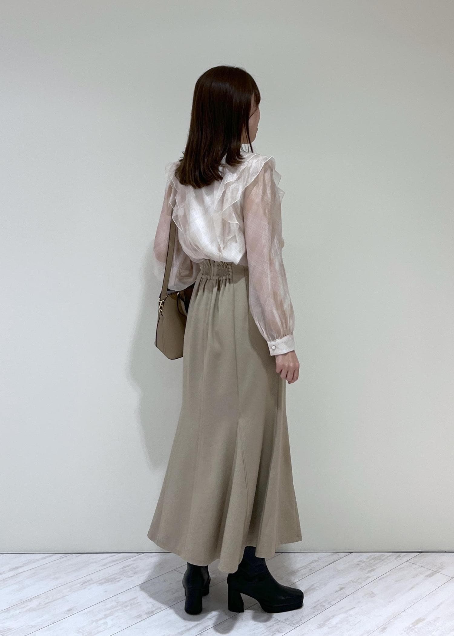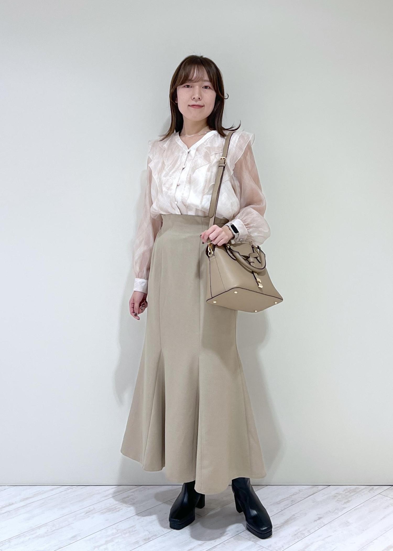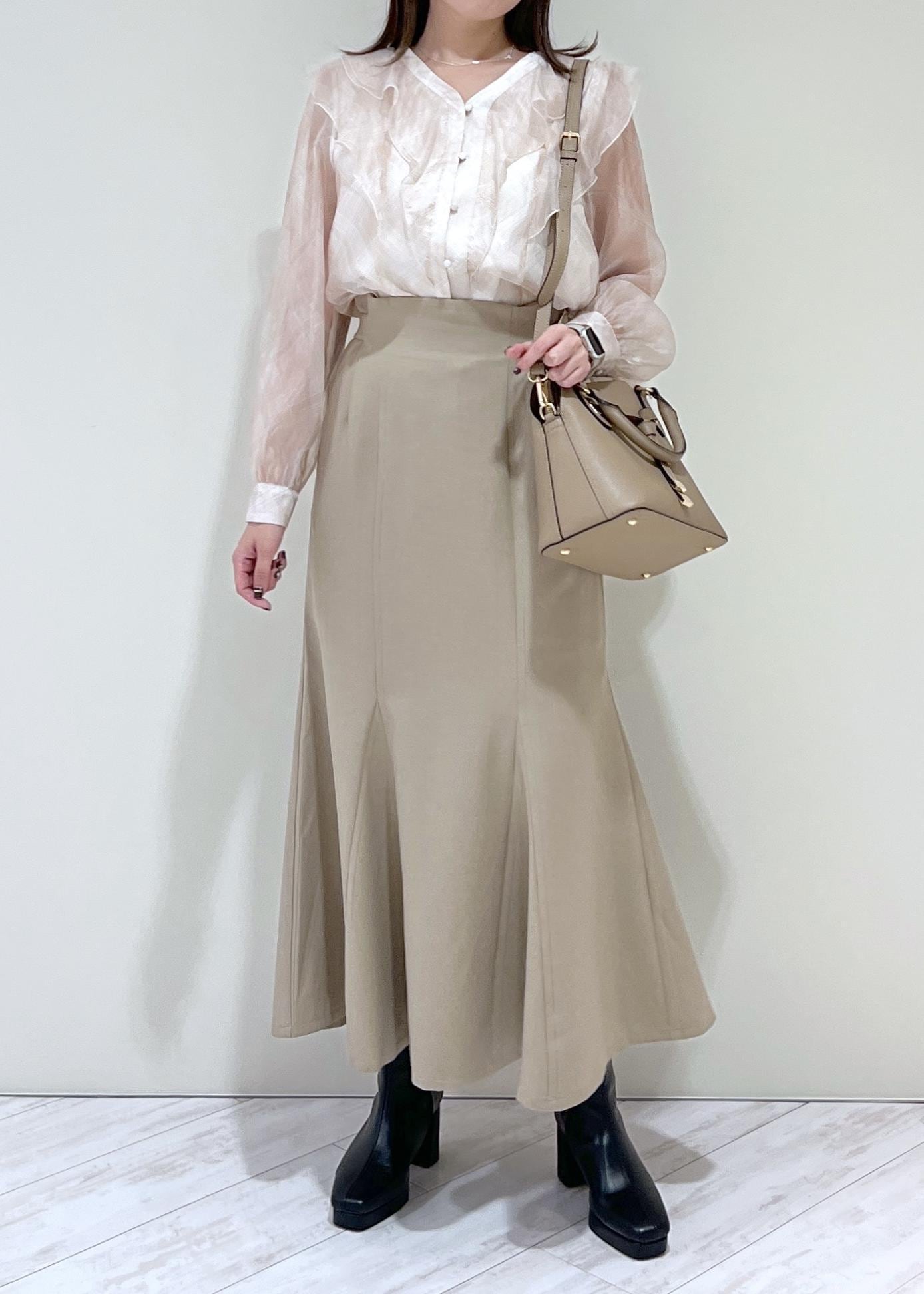 VIS美easyウーリッシュマーメイドスカート/セットアップ対応・イージーケアベージュ / L¥6,589レビュー身長164cmで足首上にくる丈でした!ウエストは後ろがゴムで楽なのと、ウエストに付いているボタンでも調節可能です◎