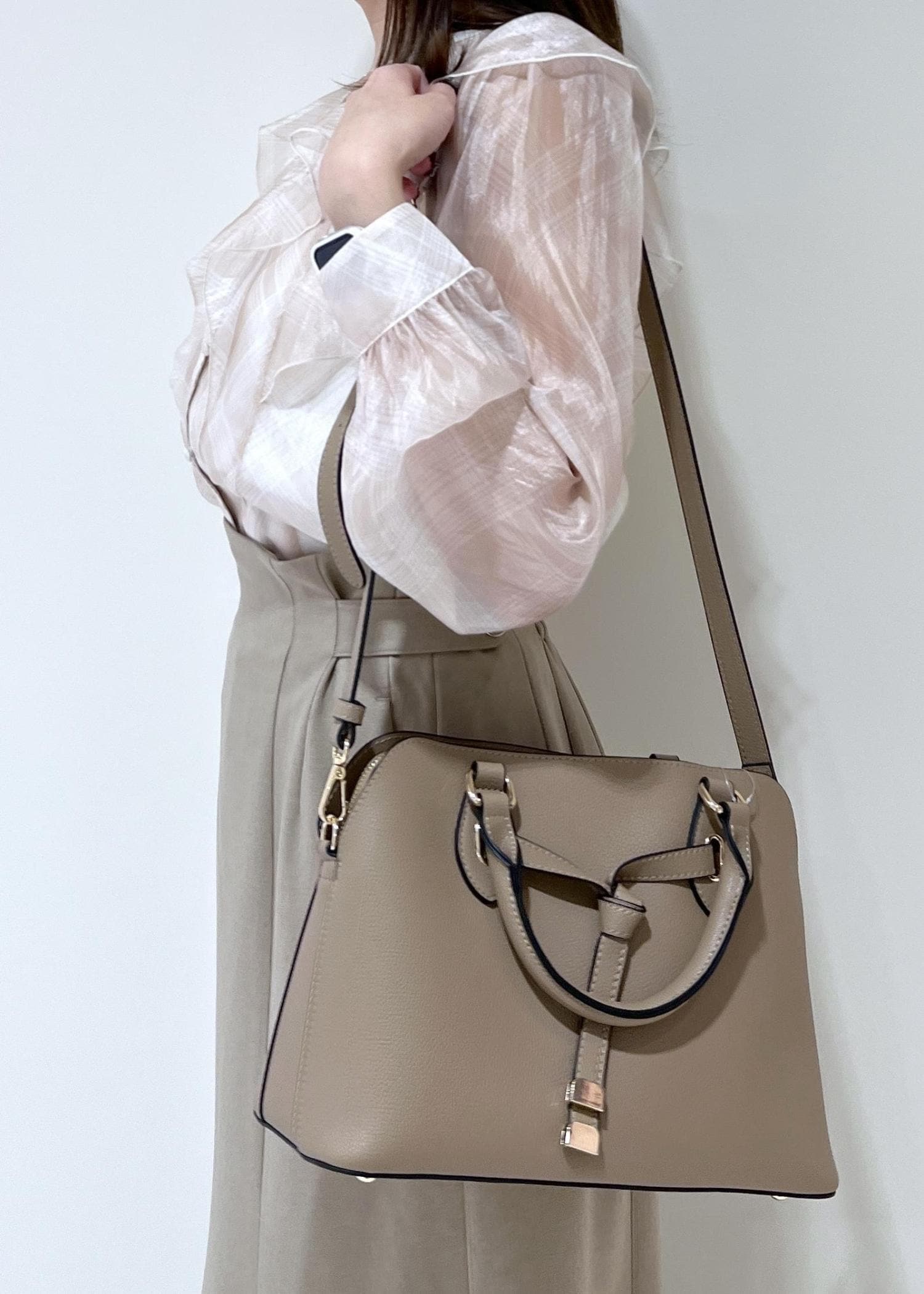 VISフロントタイ ブガッティ型ボストンバッグ/2WAYベージュ系 / F¥7,909レビュー三層構造なので整理しやすいです!ファスナー付きなので中身が見えずに安心です◎500mlのペットボトルは余裕で入るサイズ感です。