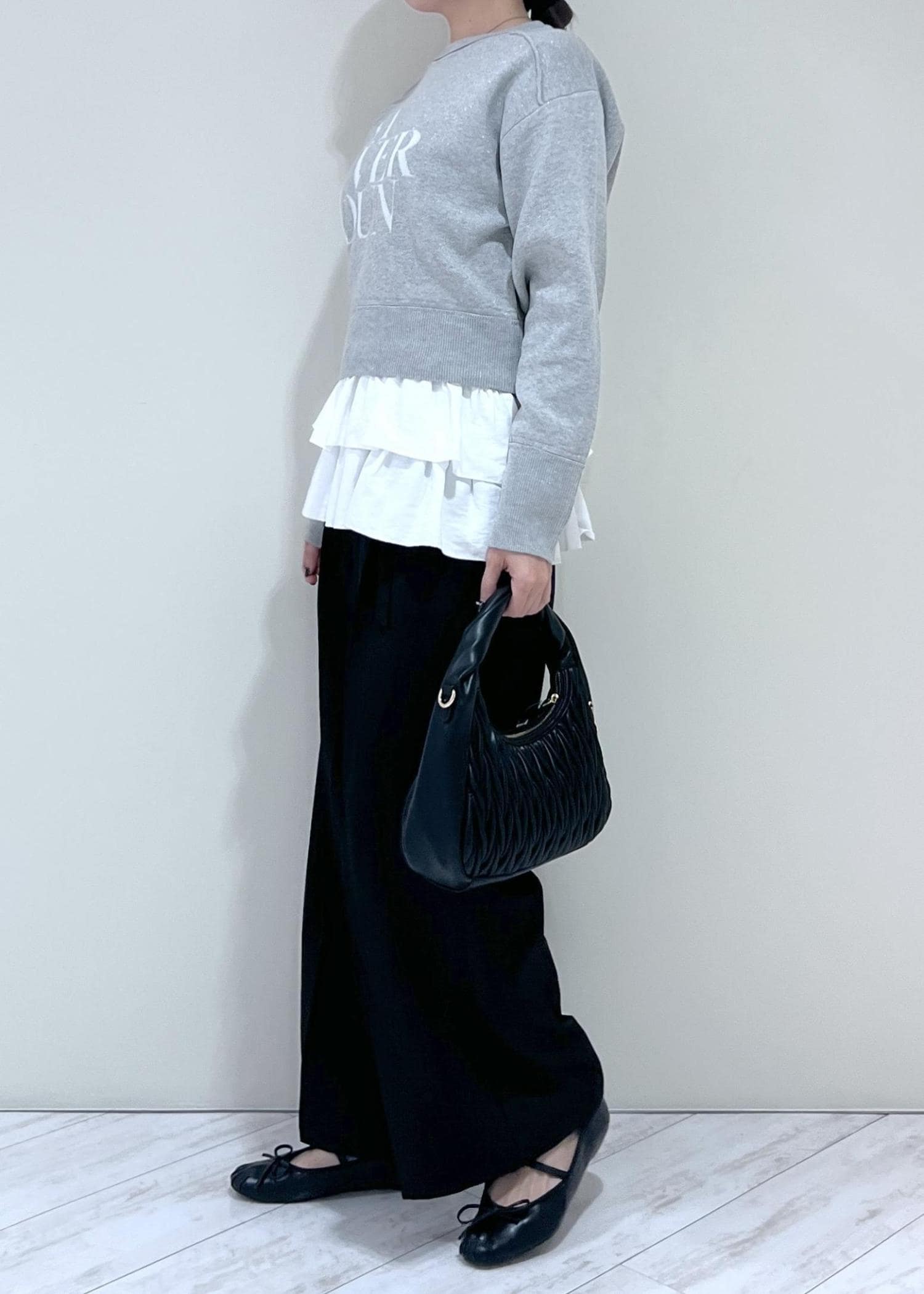裾フリルのインナーをレイヤードしています!カジュアル過ぎず、可愛過ぎないのでぜひチェックしてください♡