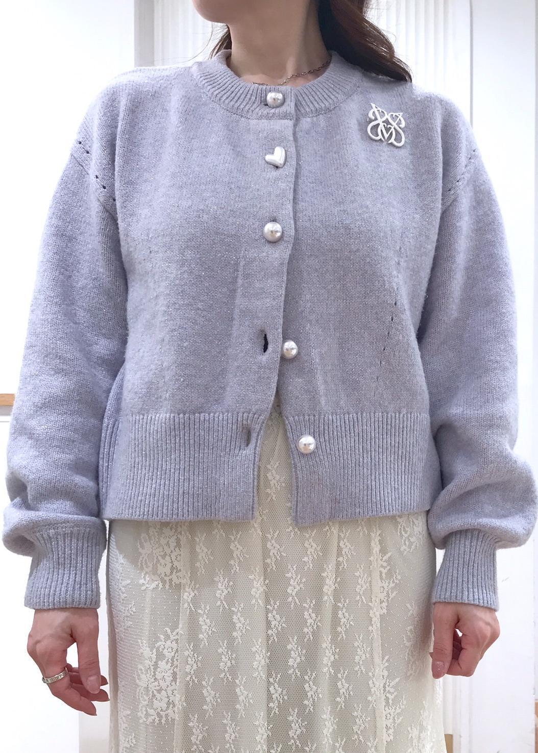 VISハートアソートパール釦ラメミックスカーディガン/イージーケア・一部WEB限定カラーパープル系 / F¥5,489レビュー着丈はお尻に少し掛かるくらいの長さです。