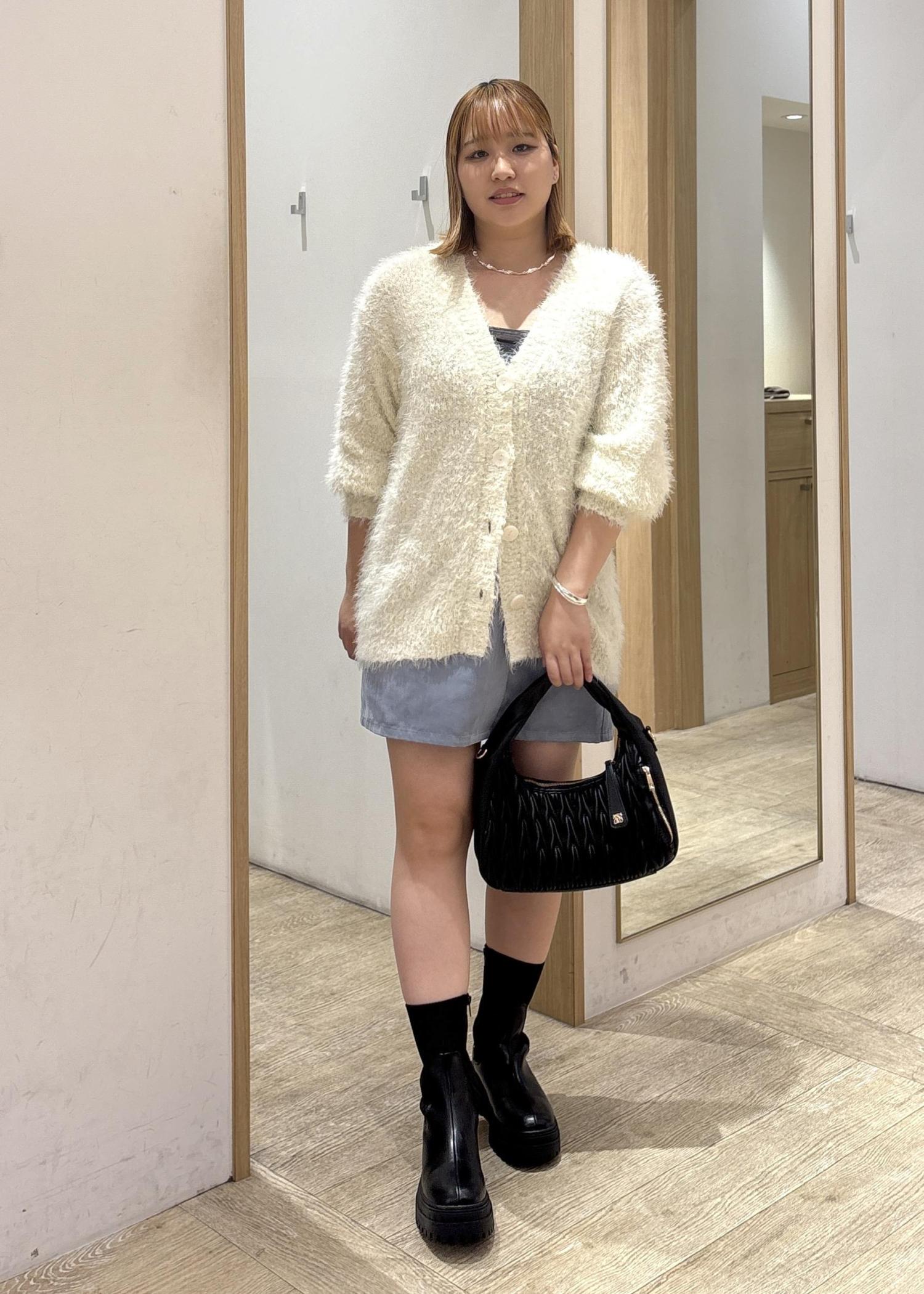VISポップコーンヤーンラメフェザーニットカーディガン/WEB限定FSサイズキナリ系 / F¥5,271レビュー肩幅が広いので毛足の長いトップスは苦手なのですが、このカーディガンは、インナーに分厚いものを入れなかったら大丈夫でした!