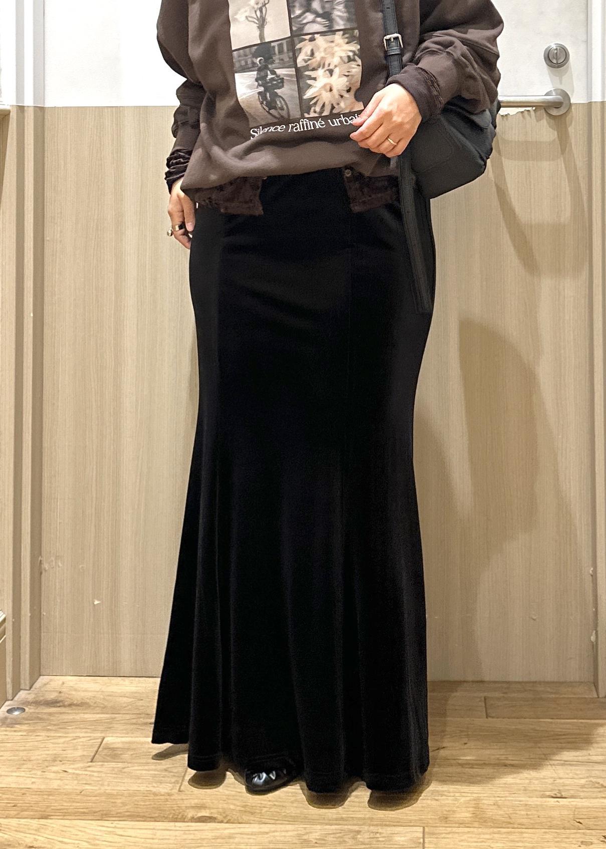 VISベロアナロースカートブラック / M¥6,589レビュー157センチ、骨格ウェーブでハイウェストで履くとくるぶしが見えるくらい、ジャストウエストで少し長めですが、フラットシューズも履ける丈感でした!