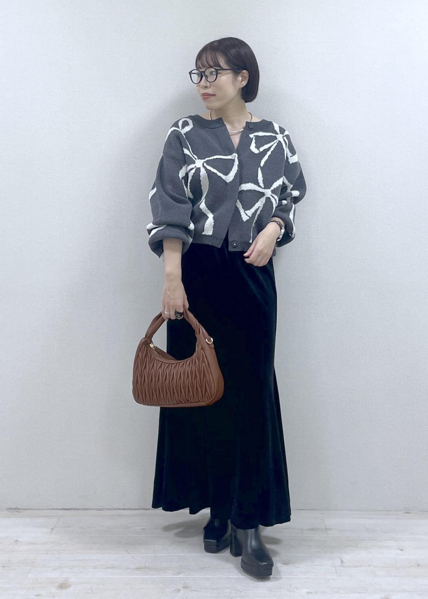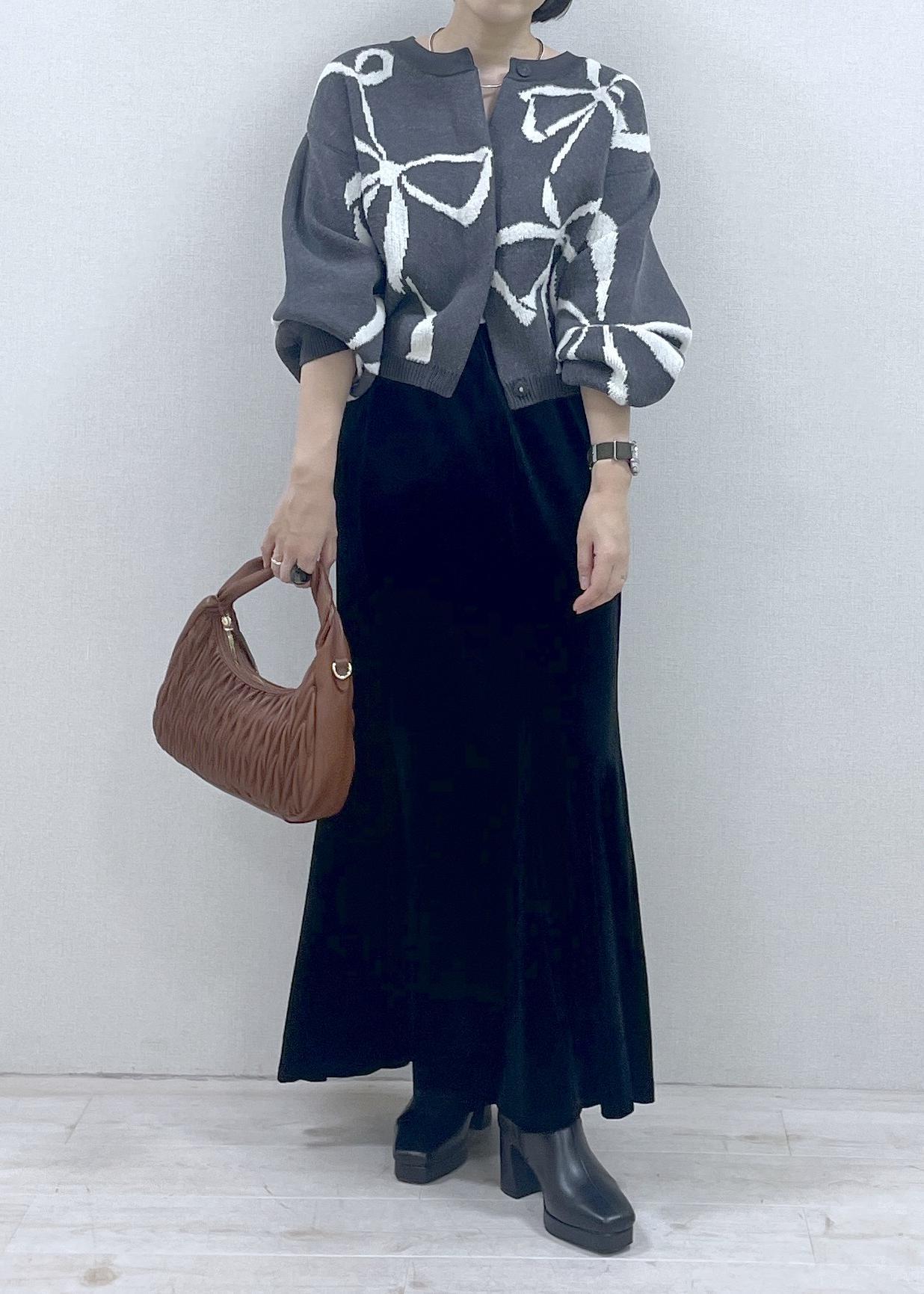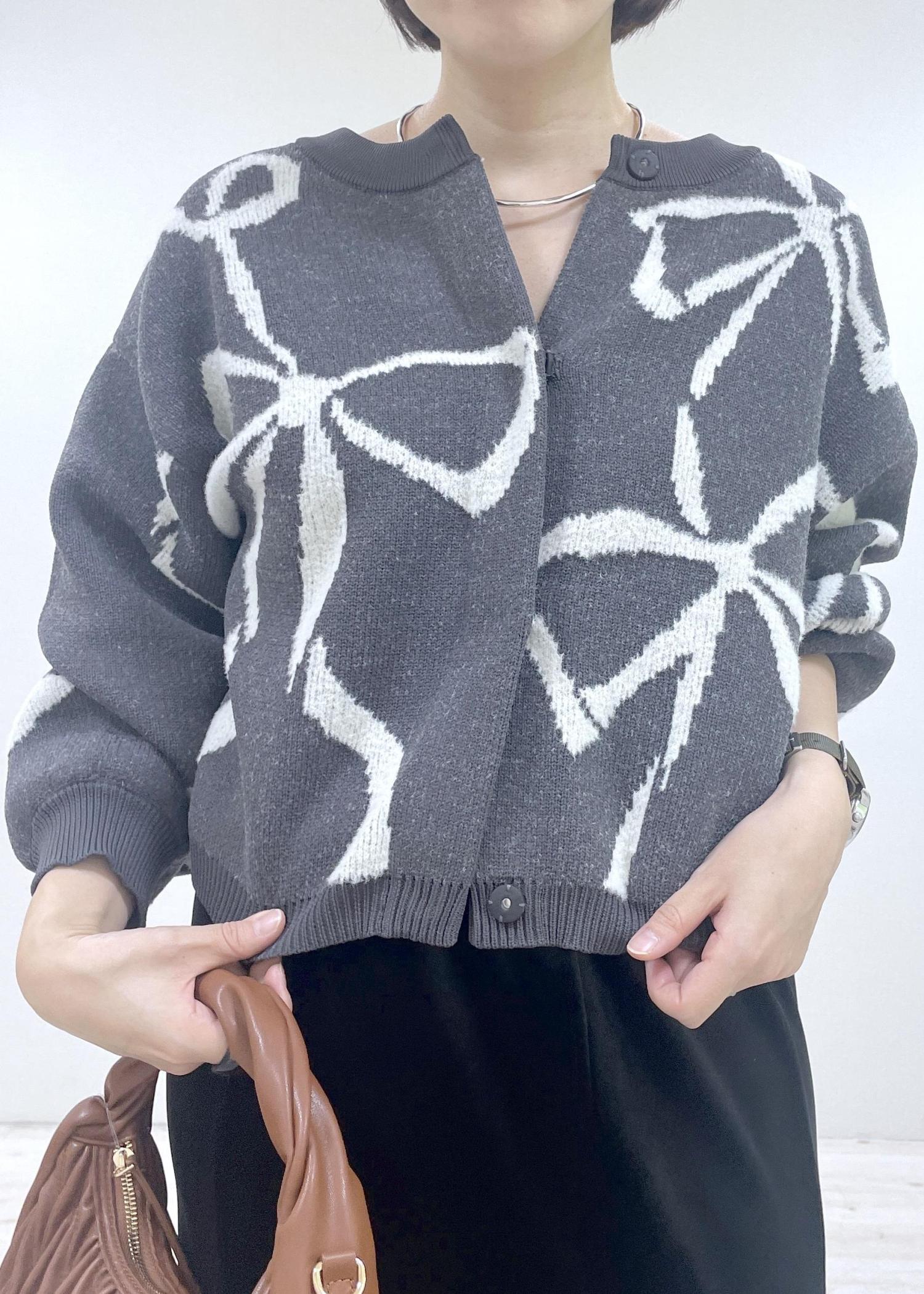 存在感のあるリボンのデザインがとてもかわいく、主役になるカーディガンです! -