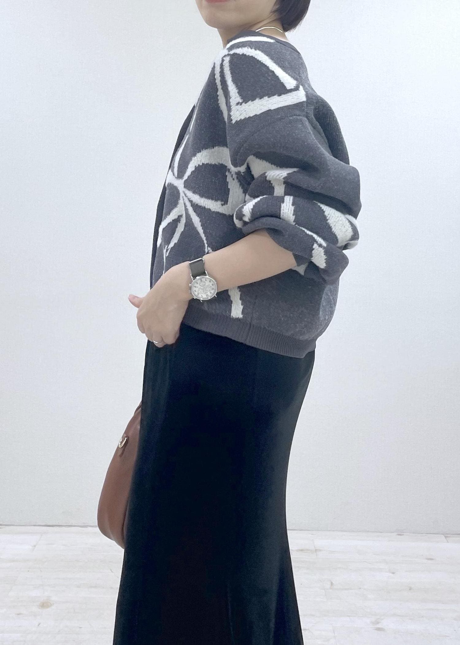 VISリボンモチーフジャガードカーディガン/イージーケアグレー / F¥6,919レビューモチモチの厚めのニットカーデで、着心地がとてもいいです。