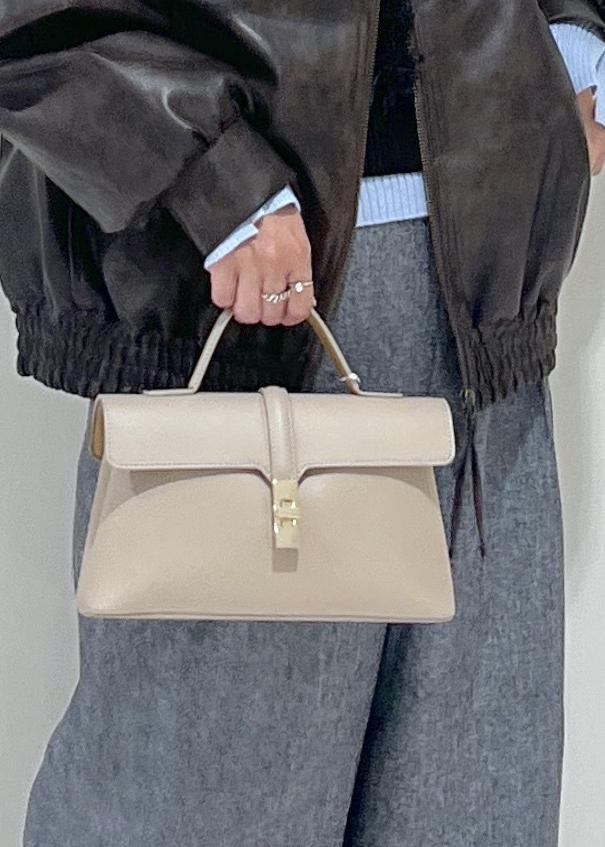 ショルダーが付いているので、斜め掛けでもワンハンドルでもお待ち頂け使いやすいです。 -