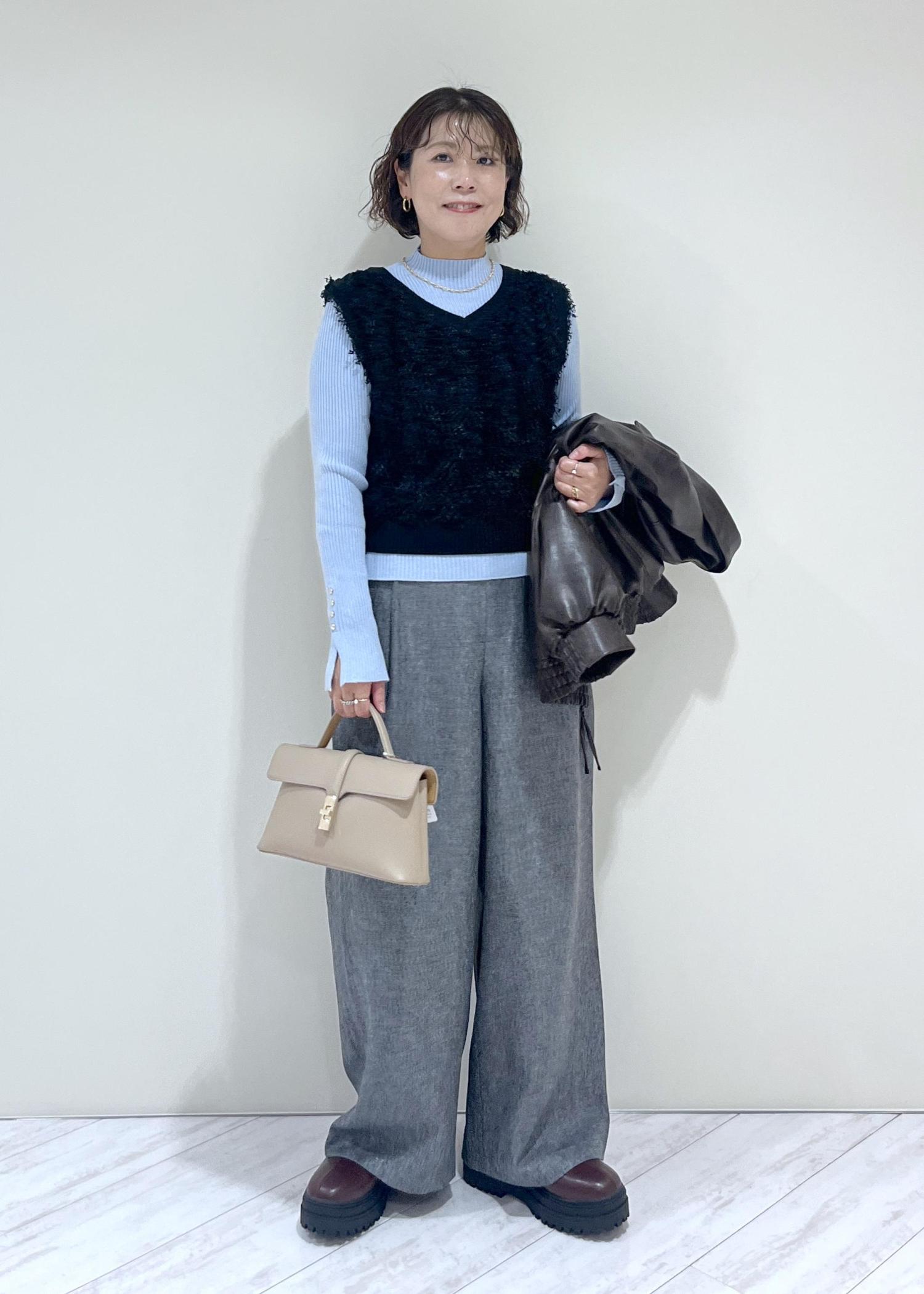 コンパクトめなのでスッキリ着用できて、いつものトップスにレイヤードするだけでワンランクアップのオシャレ感がでます。 -