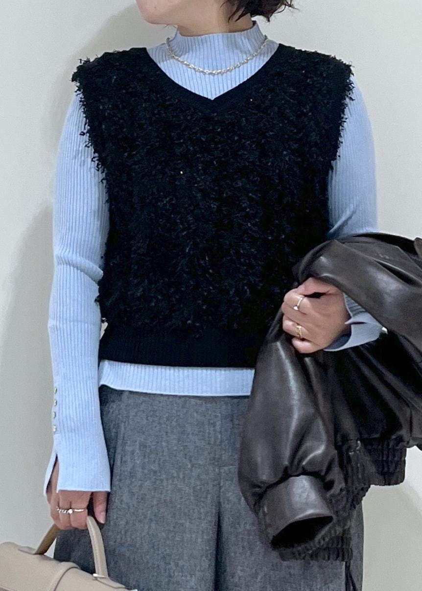 VISスリーブ釦アクセントリブニット/WEB限定FSサイズ・静電気防止サックス / F¥4,389レビュー程よいヒット感のあるリブニットで一枚で着ても、レイヤードでも使いやすいです。