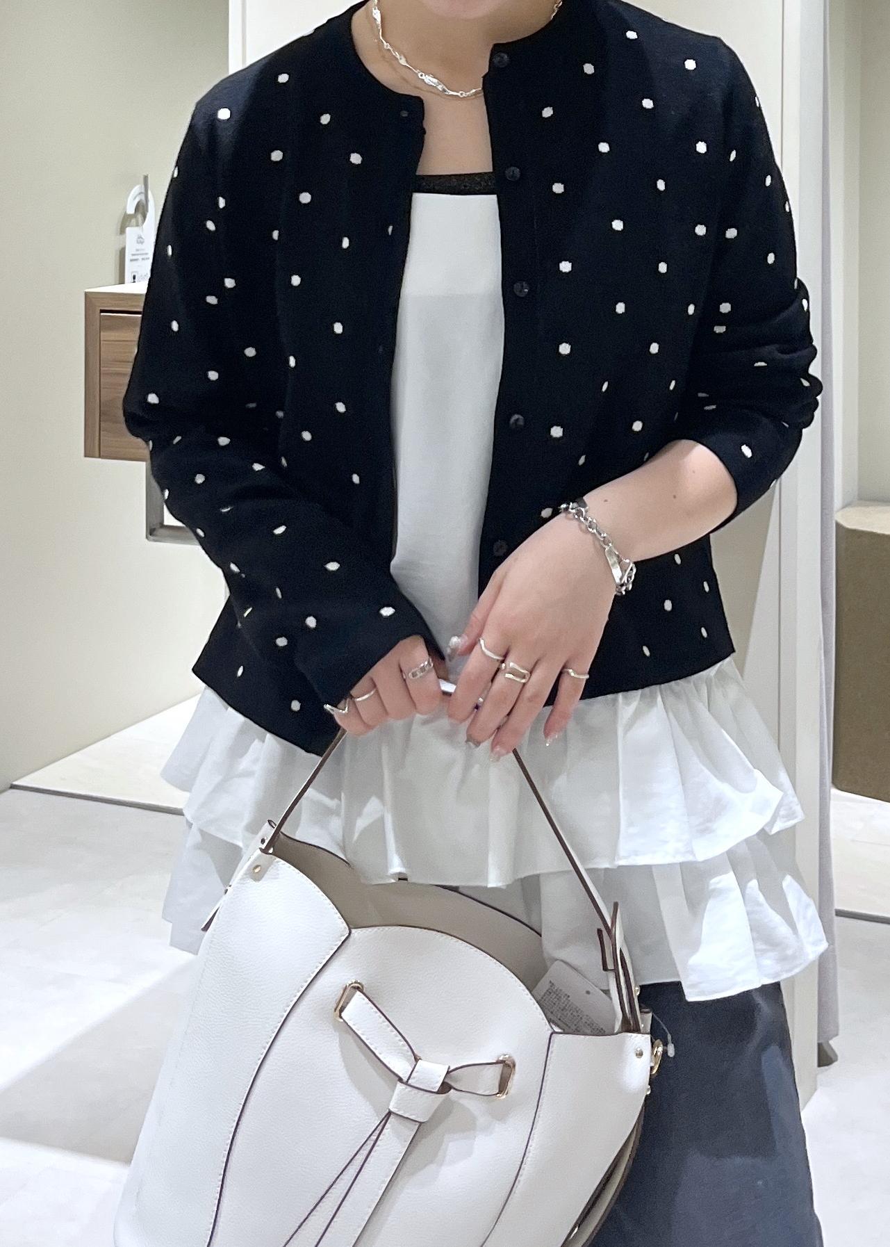 低身長な私が着用しても大きすぎることはないサイズ感だったので、丈の短めなカーディガンやジャケット類と合わせて着用オススメです!!