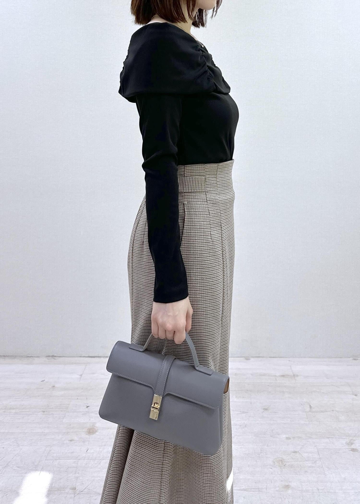 お仕事でも使いやすいオフショル風のトップス。
