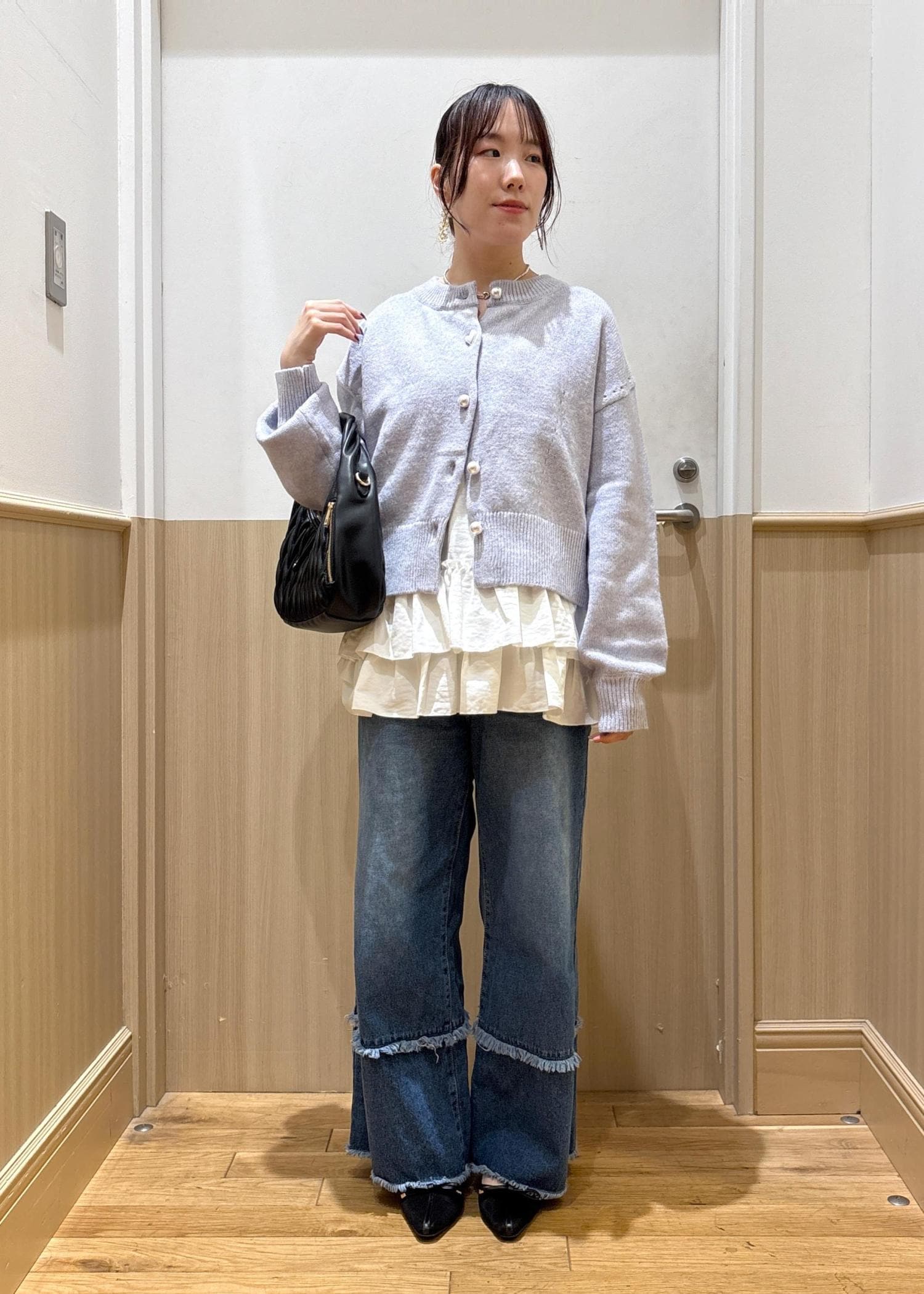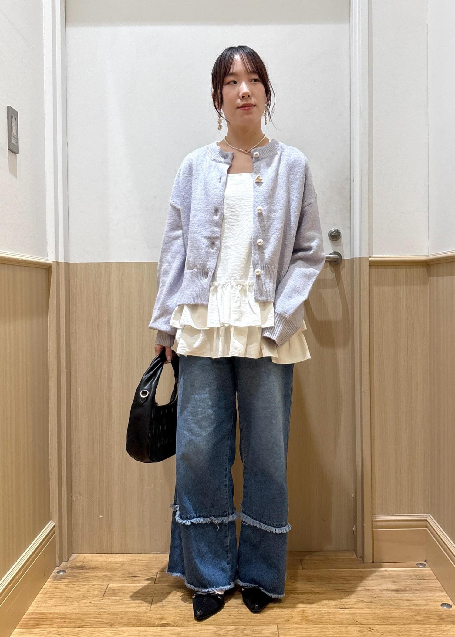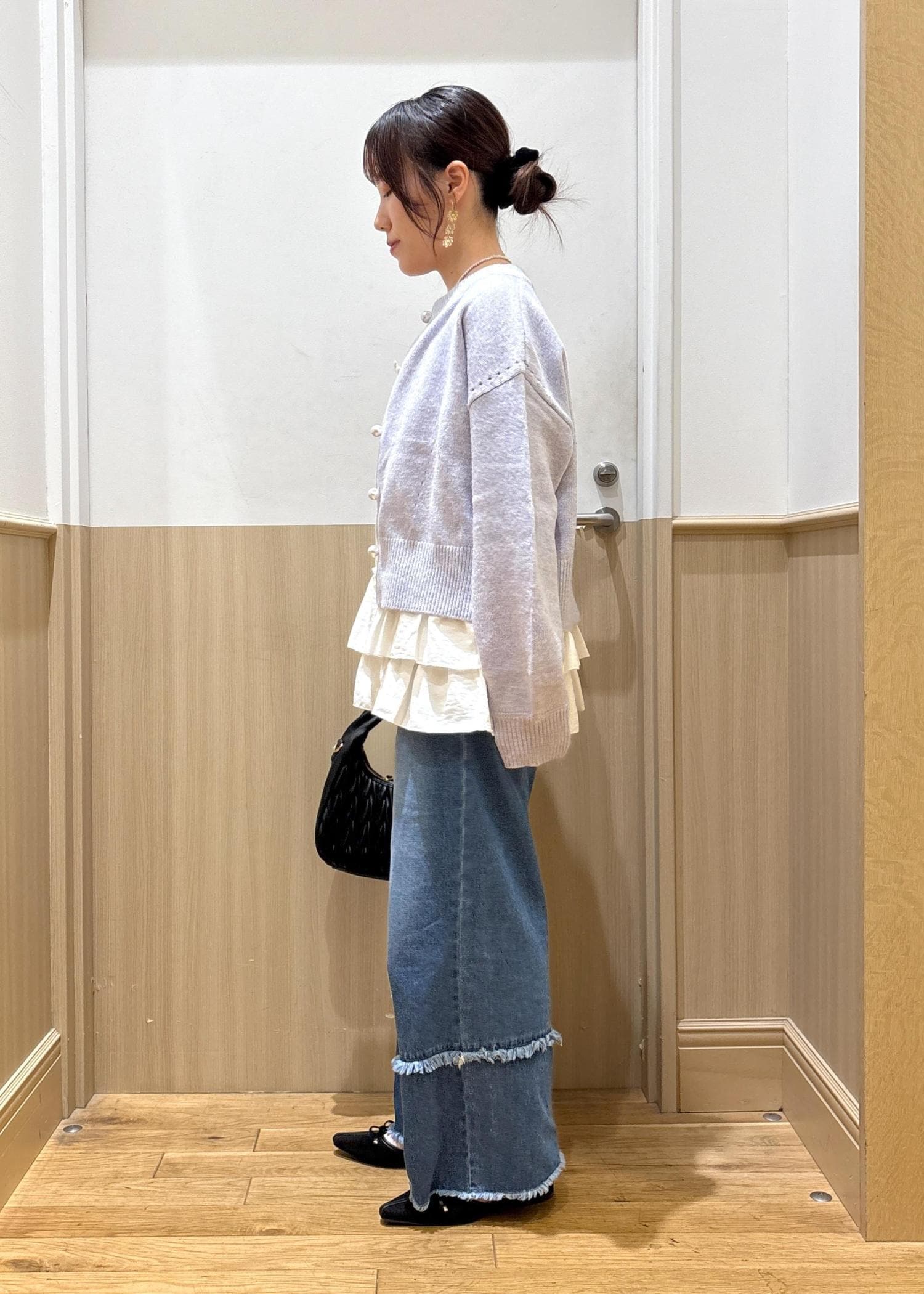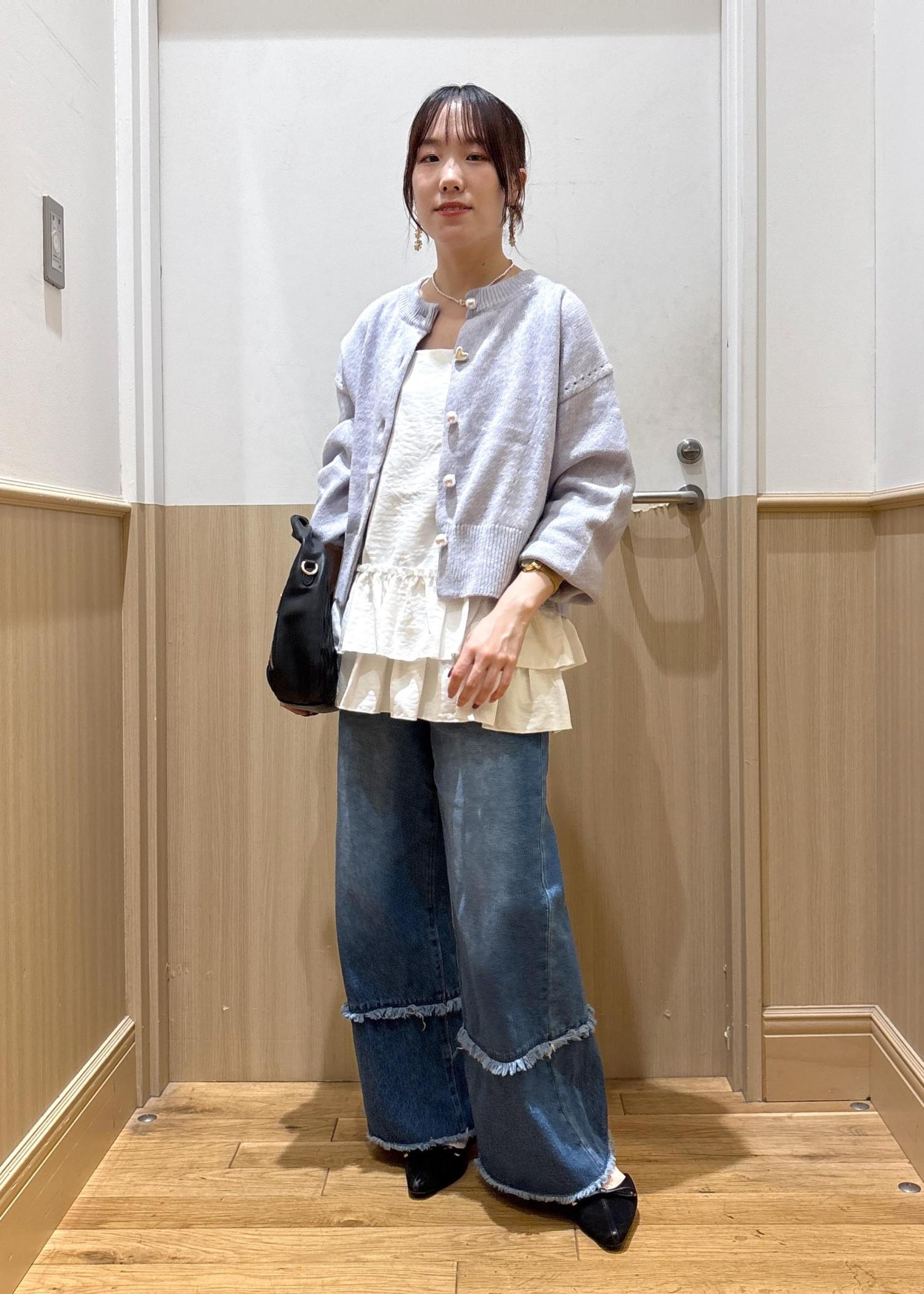 VISレイヤードティアードインナートップスオフホワイト / F¥4,389レビュー裾のフリルは広がりが控えめなのと、丈も長すぎないので低身長さんでもすっきりした印象でレイヤードスタイルが完成します!