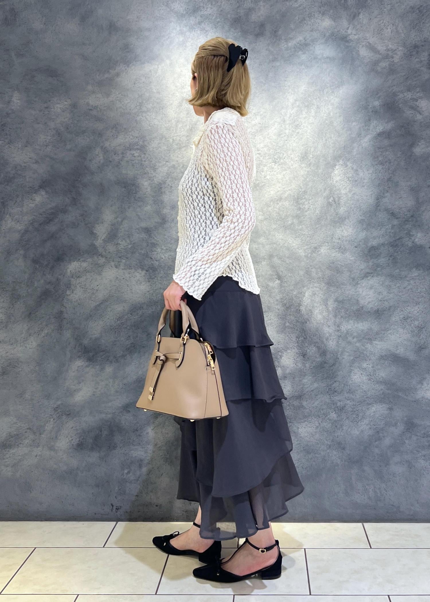 スカートはパンプス合わせだとフェミニンになりやすいからこれからがどっちも楽しめる秋本番。