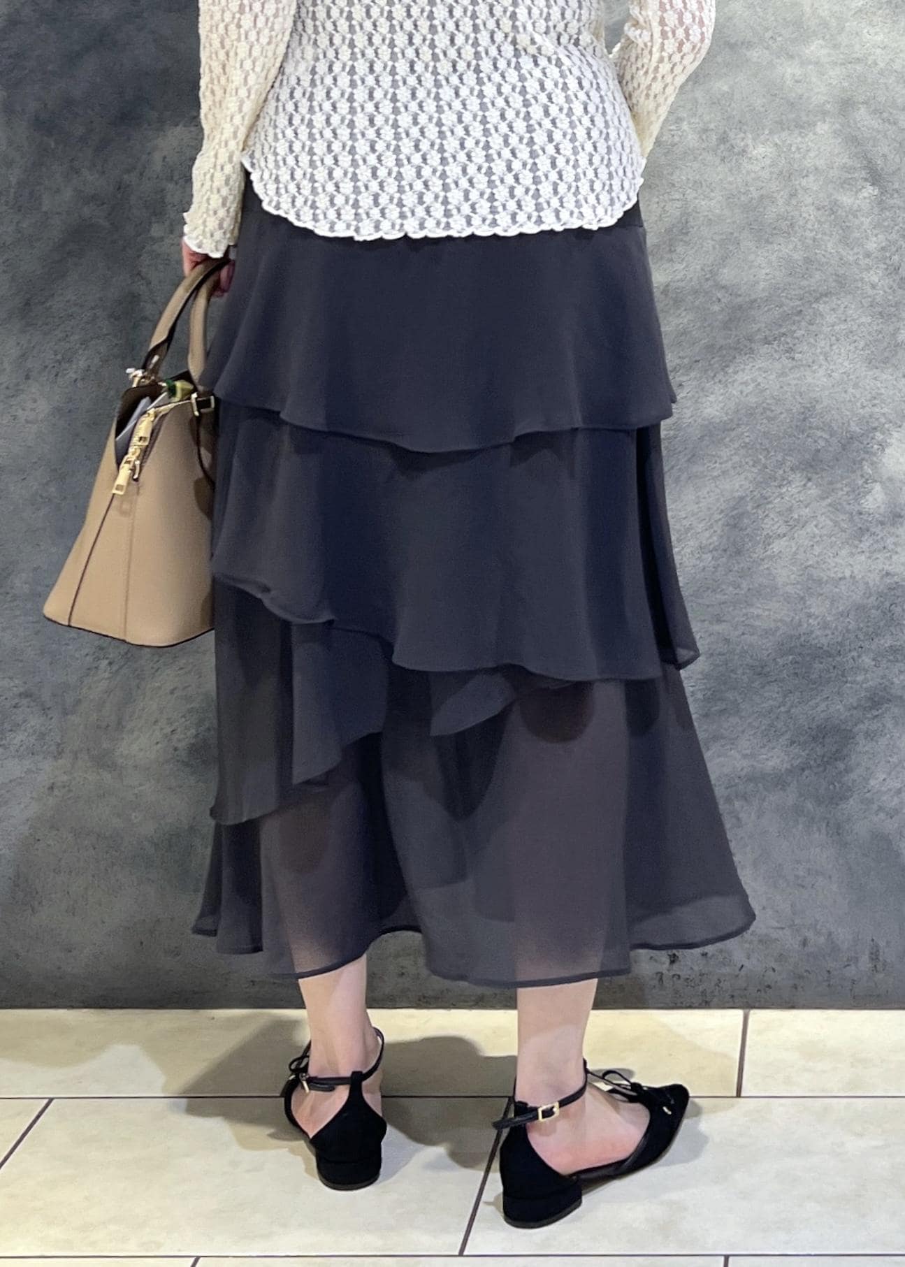 VIS花柄アソート楊柳ティアードスカートチャコール / F¥4,613レビューウエストゴムなので高身長でもある程度長さの調節ができる安心のスカート。