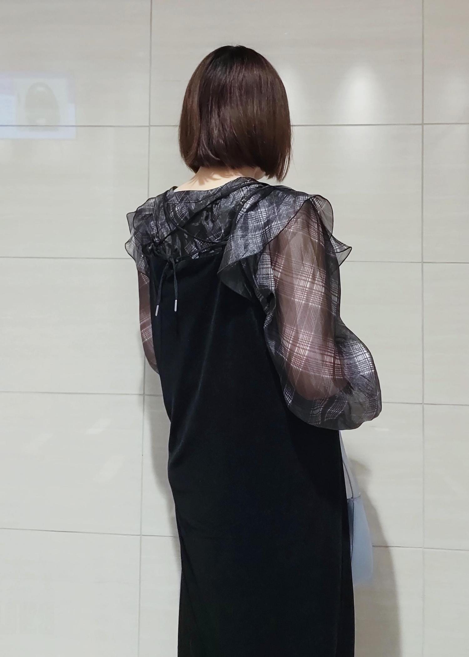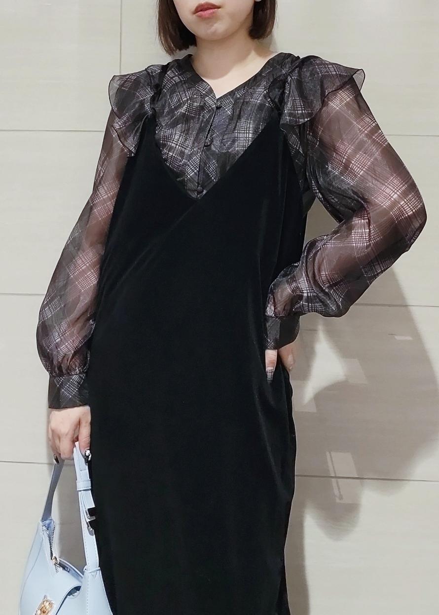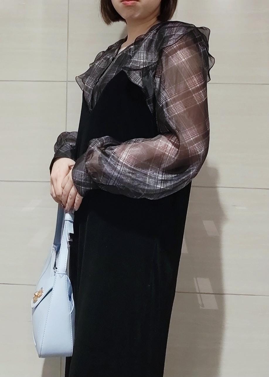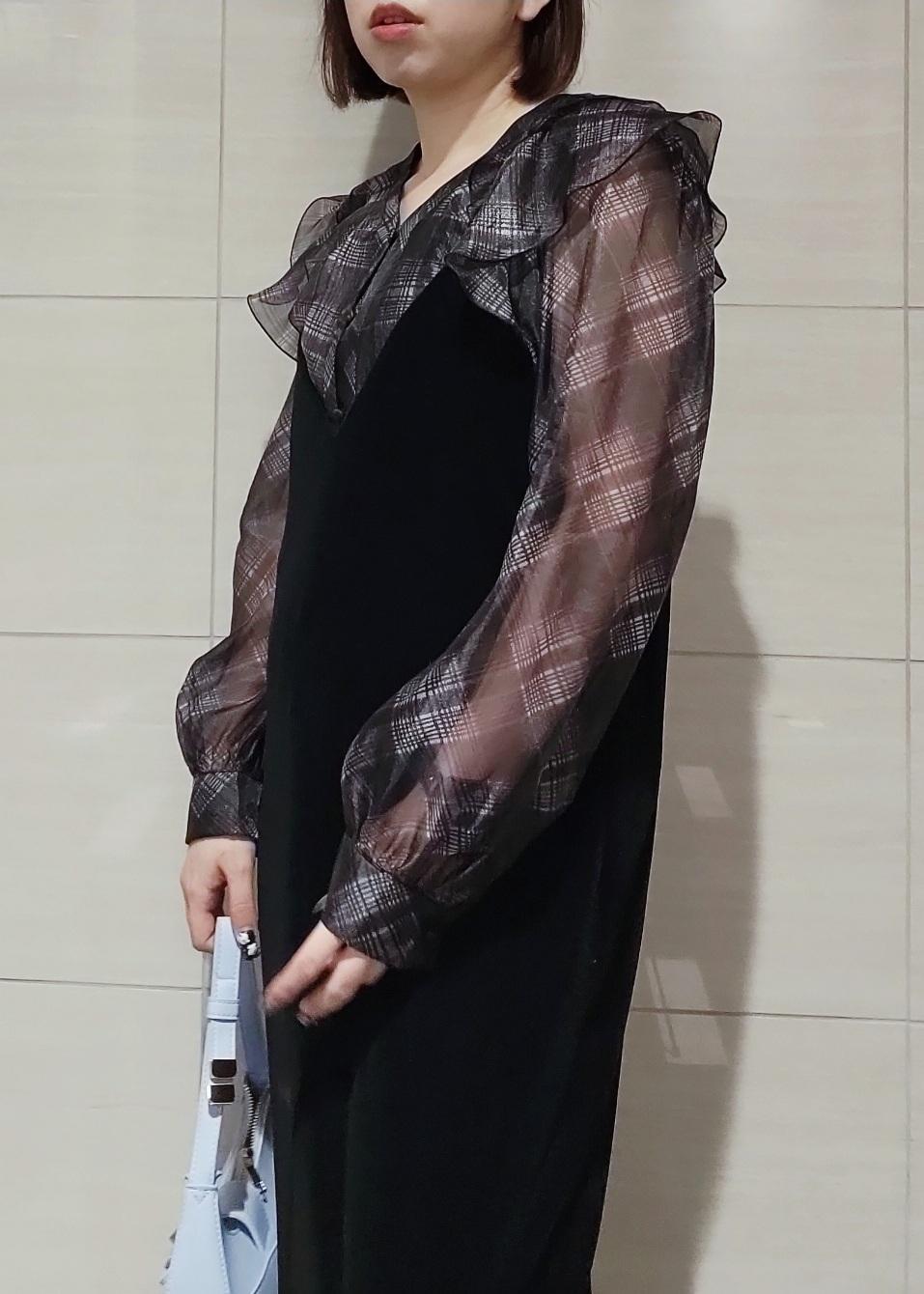 VISフロントフリルシアーチェックブラウス/イージーケアブラック系 / F¥4,612レビューお袖にシアー感がありますが、見頃には裏地が入ってますので透け感を気にせず着用できます♪