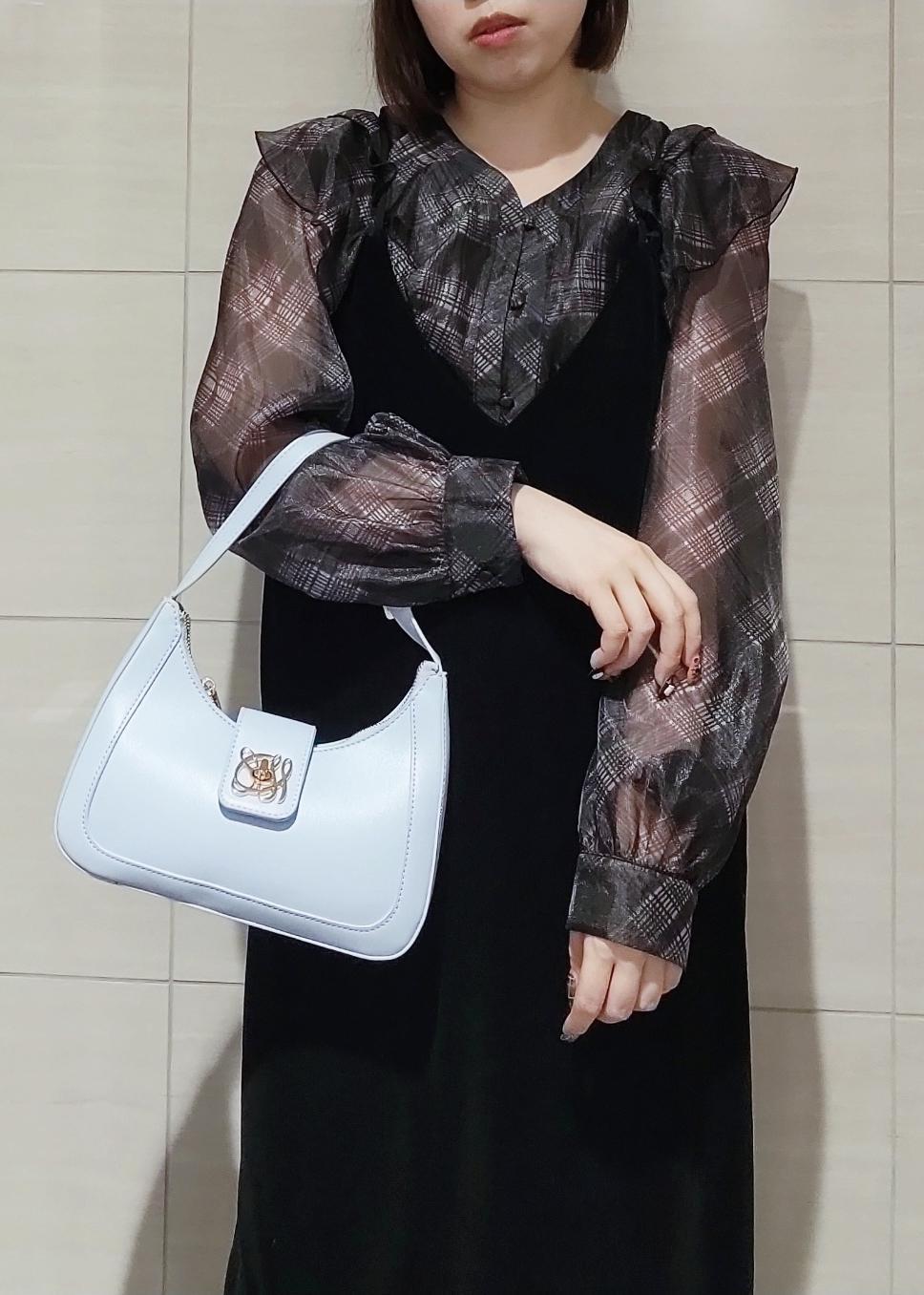 VIS【新色追加】【180℃美人見え】ハンドルリボンワンショルダーバッグサックス / F¥5,929レビューファスナータイプなので中身が見えず、ひねり金具なので開閉もしやすいです。長財布が収まるほどのサイズ感で、大きすぎず軽量で使いやすいです。