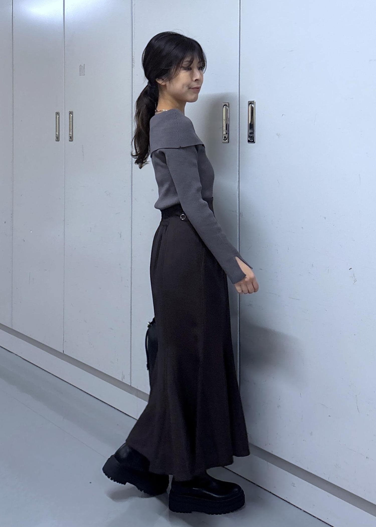 VIS美easyウーリッシュマーメイドスカート/セットアップ対応・イージーケアダークブラウン / S¥6,589レビュー156cm/Sサイズ着用。ウエストは両側詰めてちょうど良かったです◎SSもはけましたが、丈が少し短くSの方が好みでした。素材は光沢感があり、柔らかく透け感もない厚みです。洗濯機洗いOKが嬉しいです♪