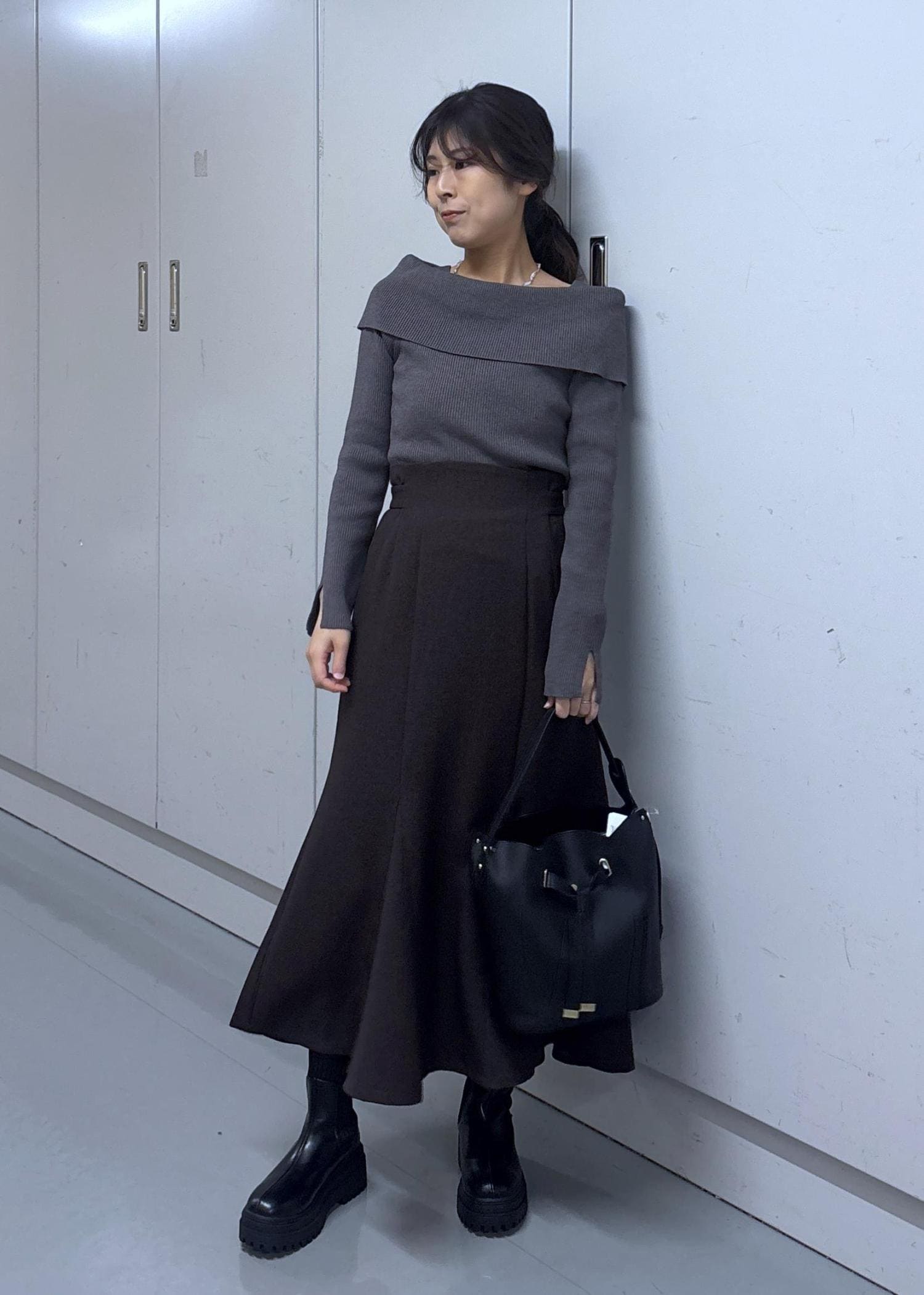 VISオフショルダーモチモチリブニットグレー /¥5,489レビュー156cm/F着用。着丈はお尻にかかる長さでほどよく体にフィット感のあるデザインです。チクチク感がなくしっとりしたニットで着心地が良いです◎一枚で着映えするデザインでボトムも選ばずに着られます♪袖のスリットが手元を綺麗に見せてくれますよ!