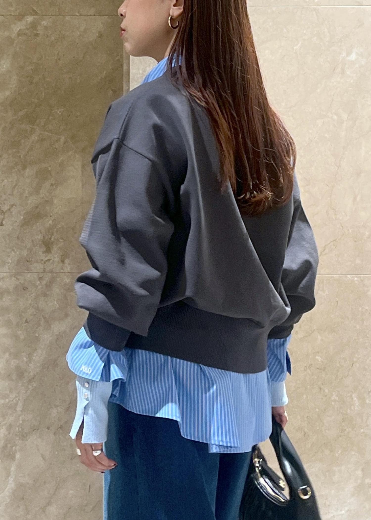 サラッと思った以上に軽めの素材感で、厚みも出ないため、着膨れ感もなくスッキリとした印象。