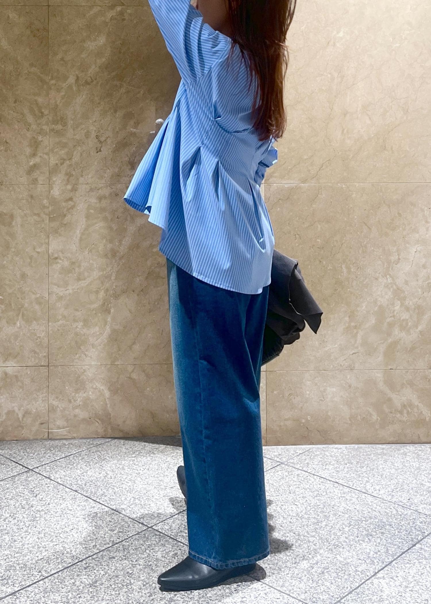 ウエストのデザインもポイントになるので、シンプルなトップスを合わせてもキマる!