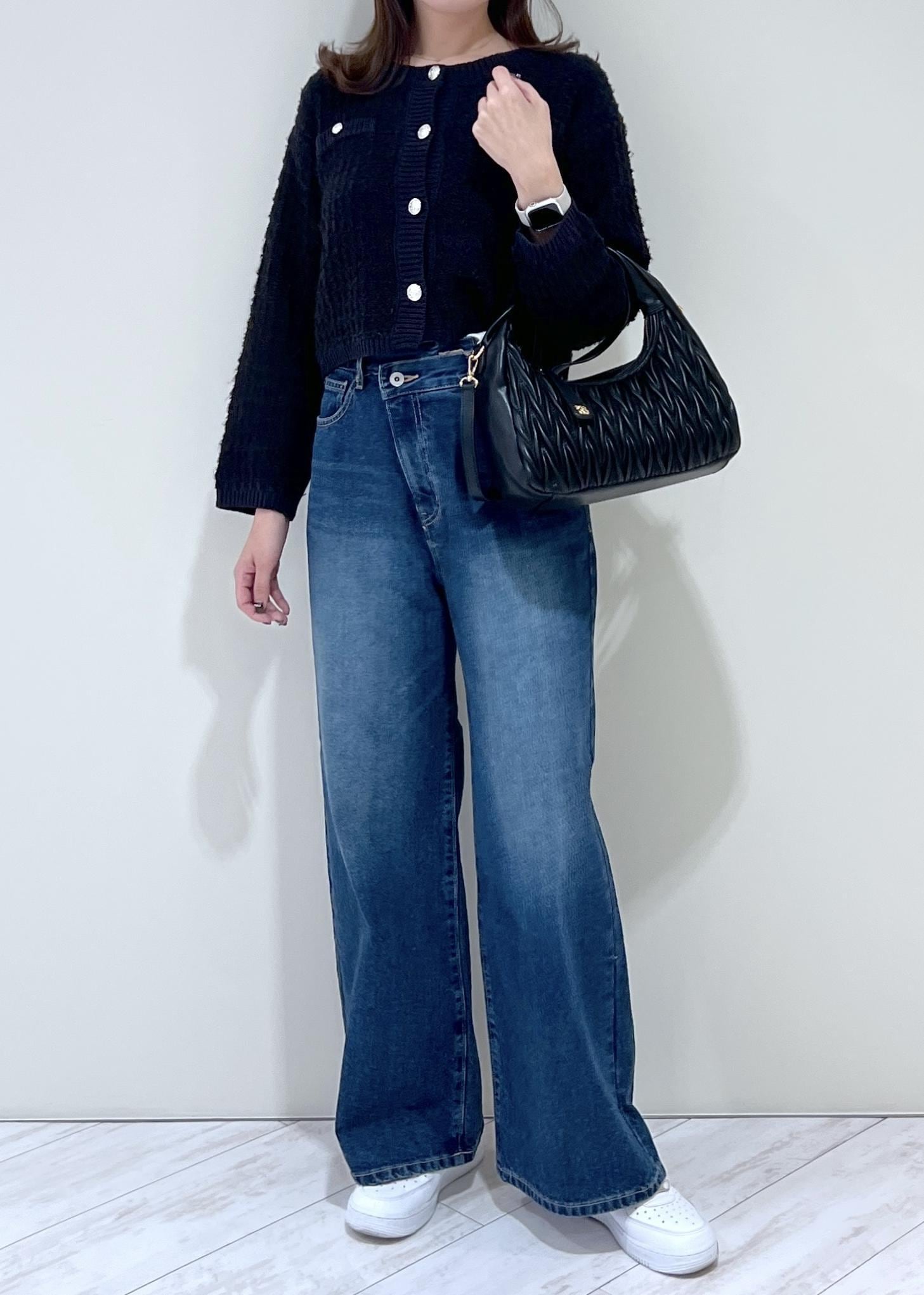 VIS【POLO BCS】VIS別注クロスベルトストレートワイドデニムブルー / M¥9,900レビュー身長164cmでぺたんこ靴で合わせましたが、床につかない丈感でした◎自身の太もも周りがあるので少しだけ余裕のあるサイズ感になりました。