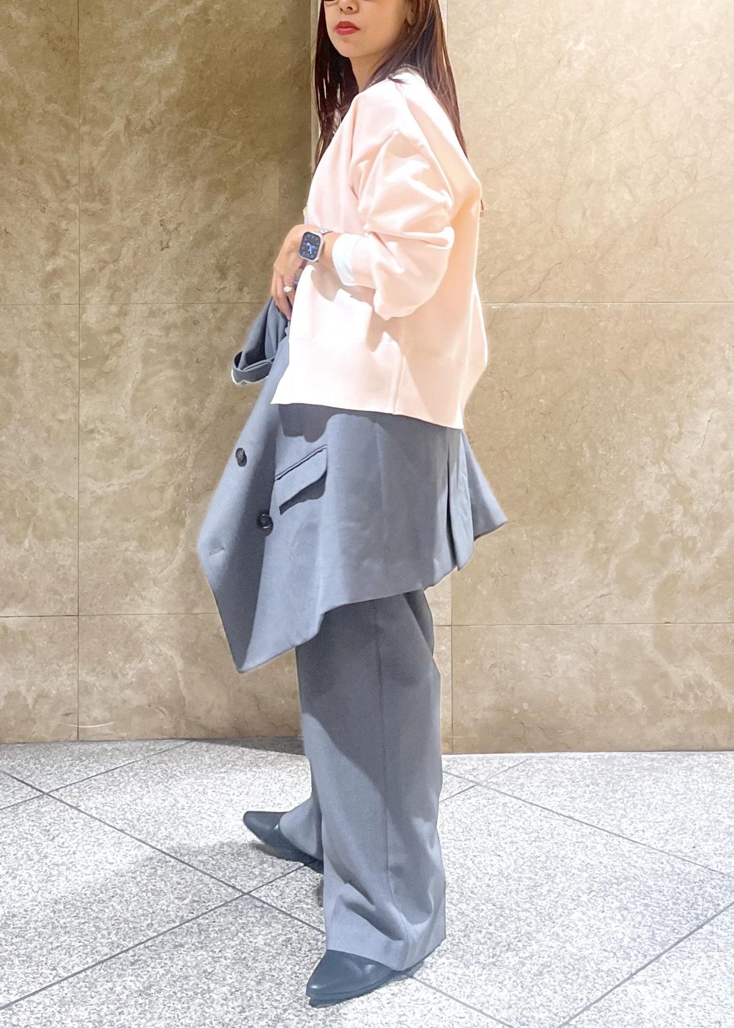 素材が柔らかすぎないおかげで、こなれたシルエットが立体的に綺麗に出る、、!袖口や裾もキュッと締まりがあるため、自然とメリハリあるスタイルが完成します。