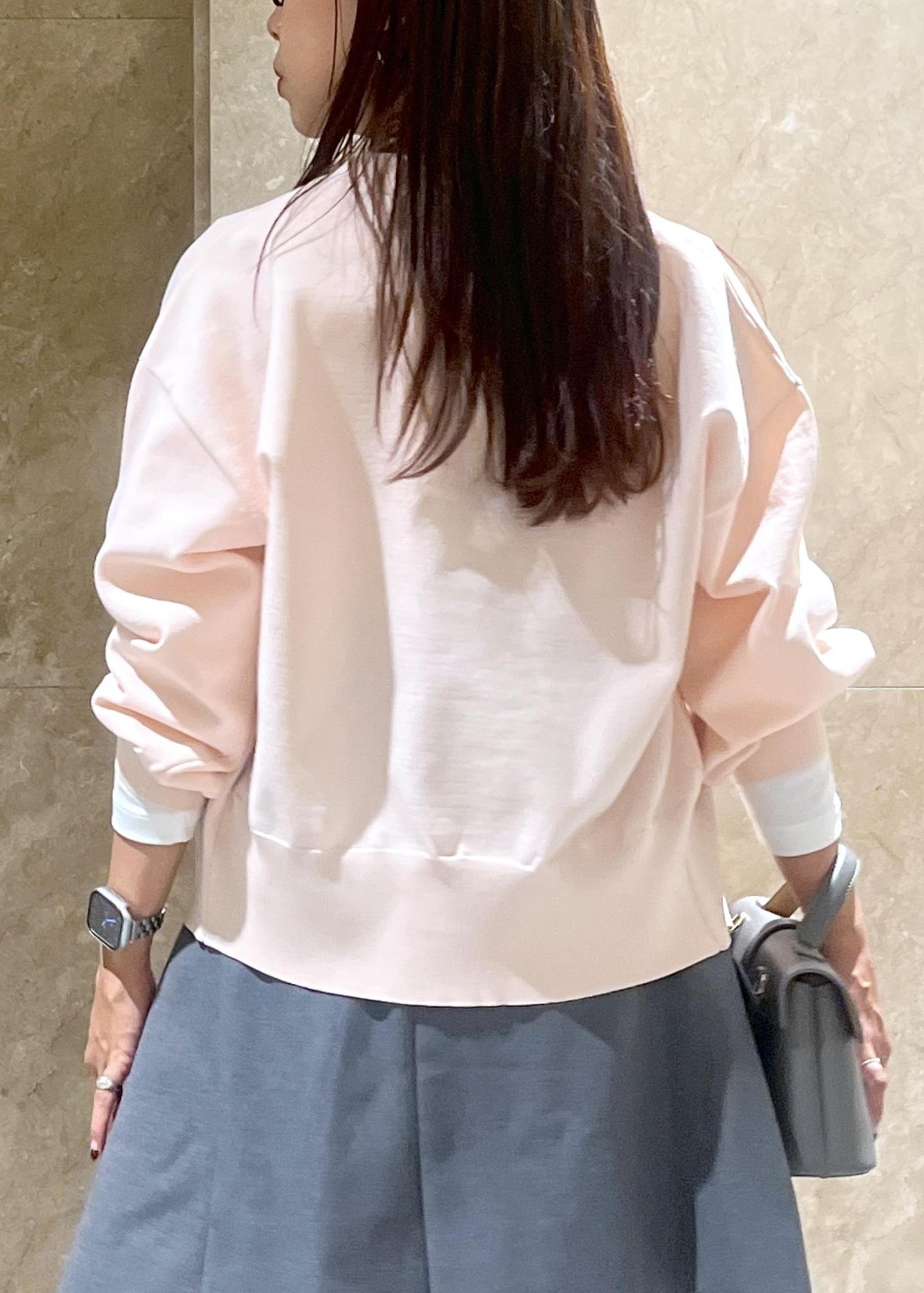 すっきりしているので、一枚での着用はもちろん、ニットの下になど、レイヤードスタイルにも重宝しそう、、!
